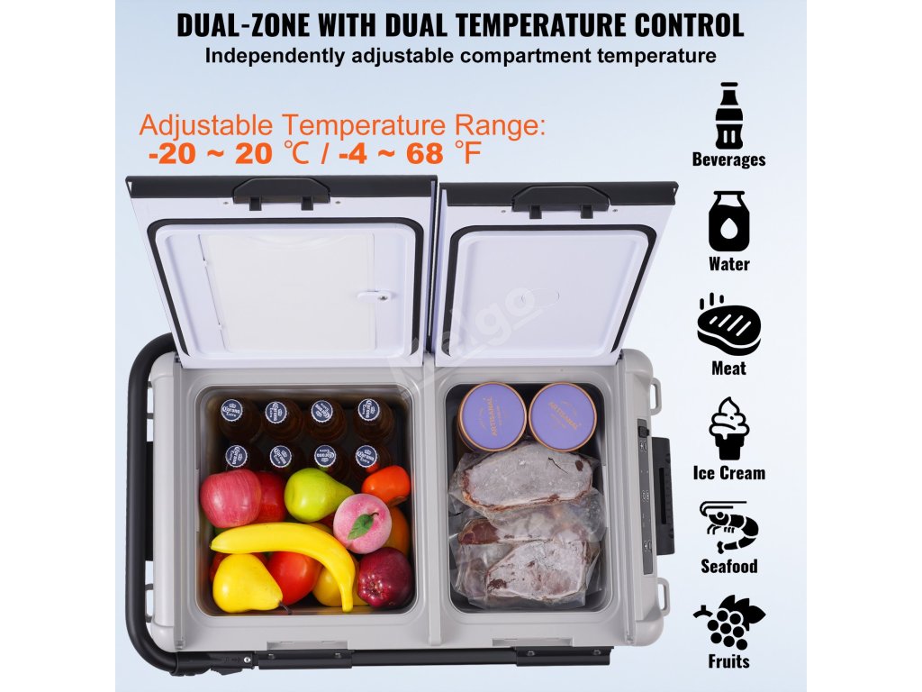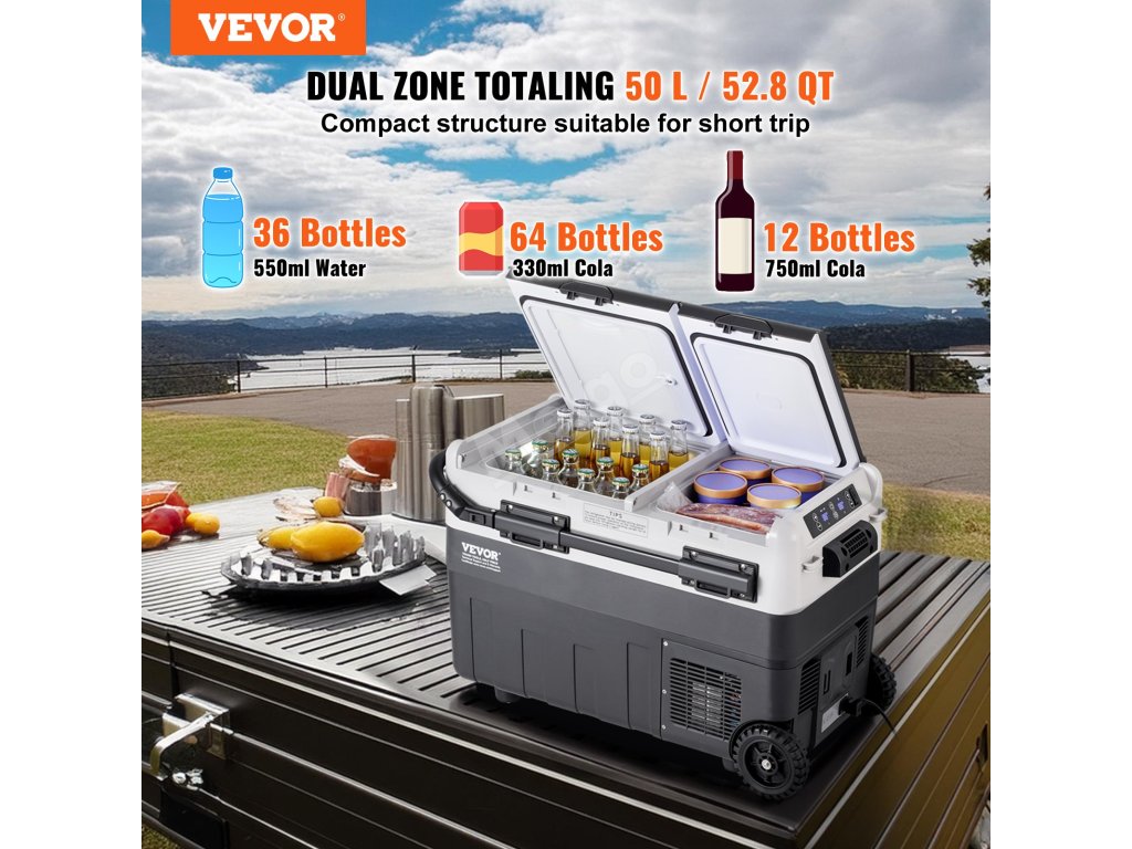 Přenosná autochladnička 12 V, 50 L/52.8 QT, dvouzónová, -4℉-68℉