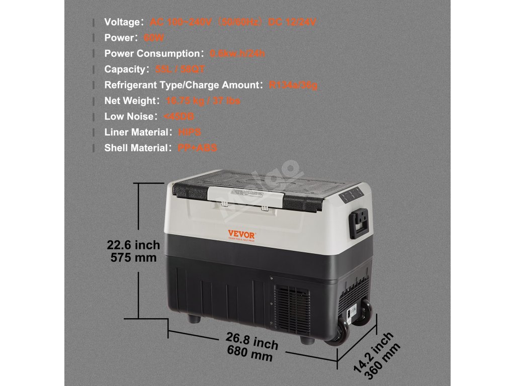 Přenosná autochladnička-mraznička kompresorová 54,9 L dvouzónová