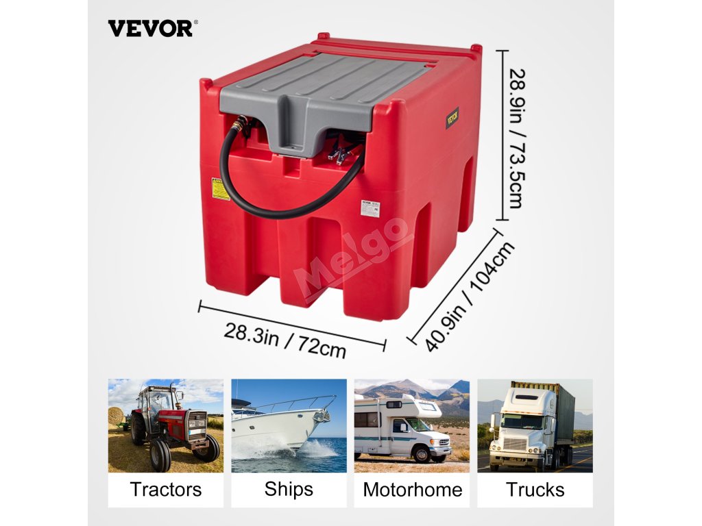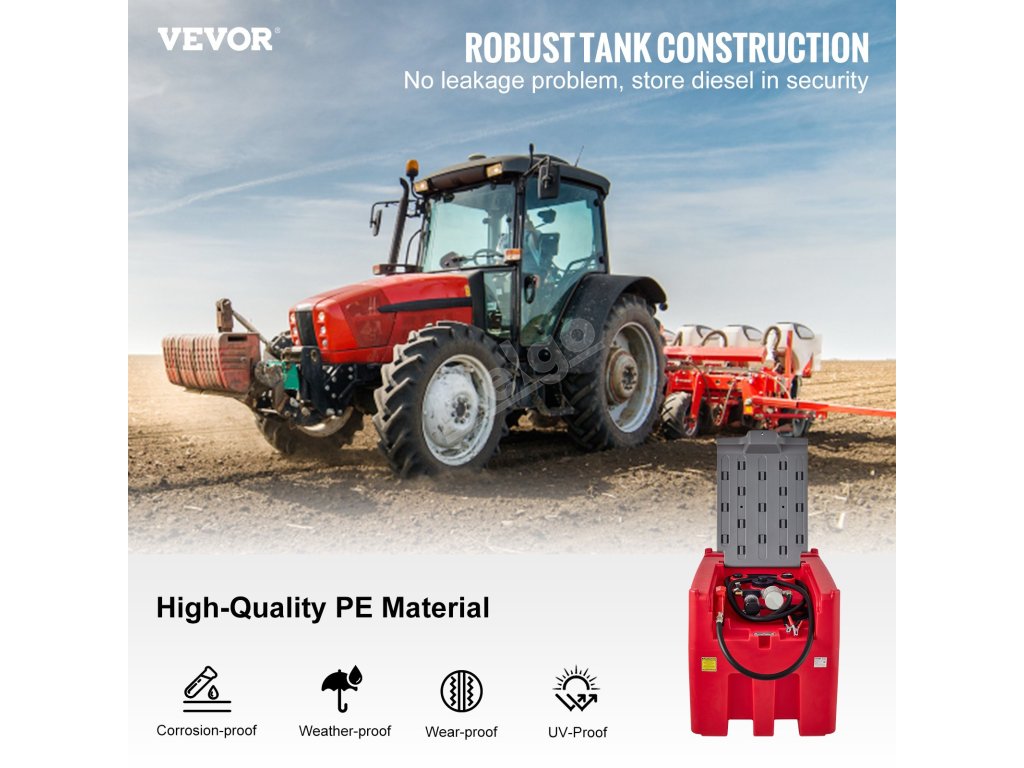 Přenosná dieselová nádrž 439.1 L 10 GPM, 12V čerpadlo, hadice 399.3 cm