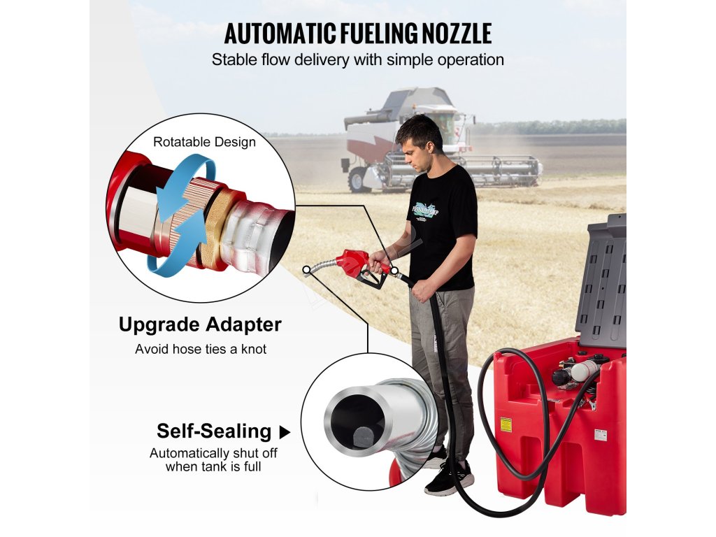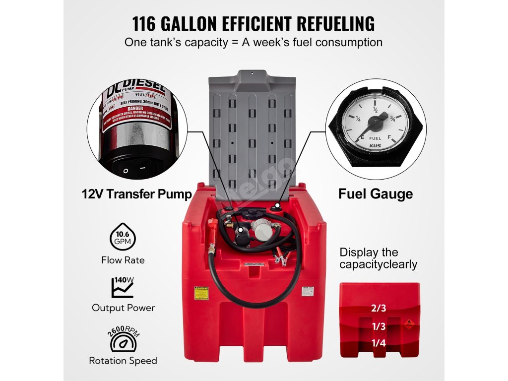 Přečerpávací čerpadlo na 12 V dodává palivo rychlostí 10,6 galonu za minutu, což je rychlejší a šetří váš čas i energii. Palivoměr je vybaven osmistupňovou stupnicí, která vám pomůže sledovat objem paliva a umožní vám včas doplnit palivo.