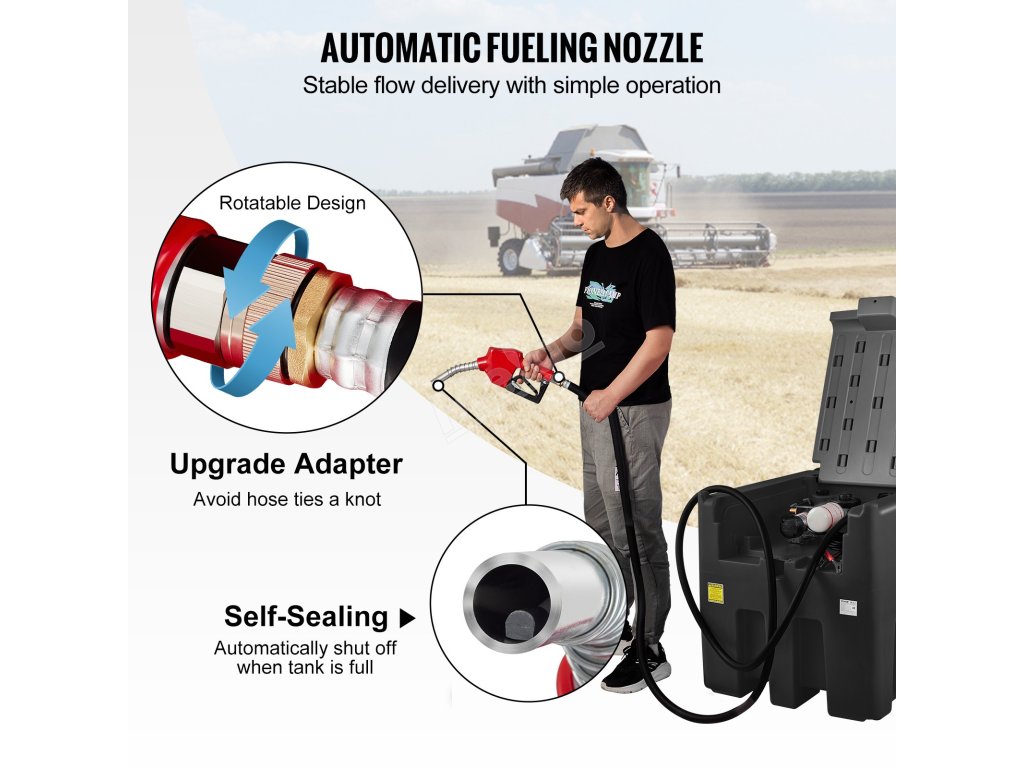 Přečerpávací čerpadlo na 12 V dodává palivo rychlostí 10,6 galonu za minutu, což je rychlejší a šetří váš čas i energii. Palivoměr je vybaven osmistupňovou stupnicí, která vám pomůže sledovat objem paliva a umožní vám včas doplnit palivo.