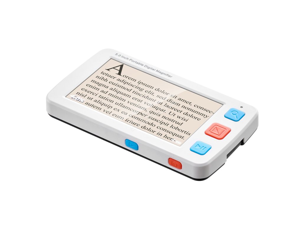 Tato přenosná digitální lupa s 5,0palcovým HD LCD displejem, 4 až 32násobným zvětšením s vysokým rozlišením, 17 barevnými režimy, 5stupňovým jasem LCD displeje, AV výstupem a dobíjecí baterií s kapacitou 2500 mAh nabízí komplexní vizuální pomoc osobám se slabým zrakem při čtení a prohlížení obrázků.