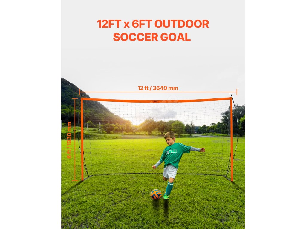 Přenosná fotbalová branka 12×6 ft, ocelovo-sklolaminátová konstrukce