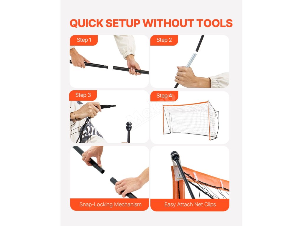 Připravit tuto přenosnou fotbalovou branku k akci je snadné díky zacvakávacímu mechanismu a uživatelsky přívětivým síťovým klipům.