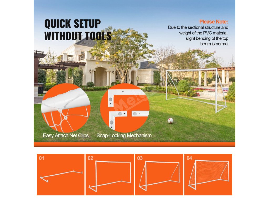 Instalace této fotbalové sítě je snadná díky jejímu inovativnímu zacvakávacímu mechanismu. Díky uživatelsky přívětivým klipům na síť můžete branku rychle připravit k akci.