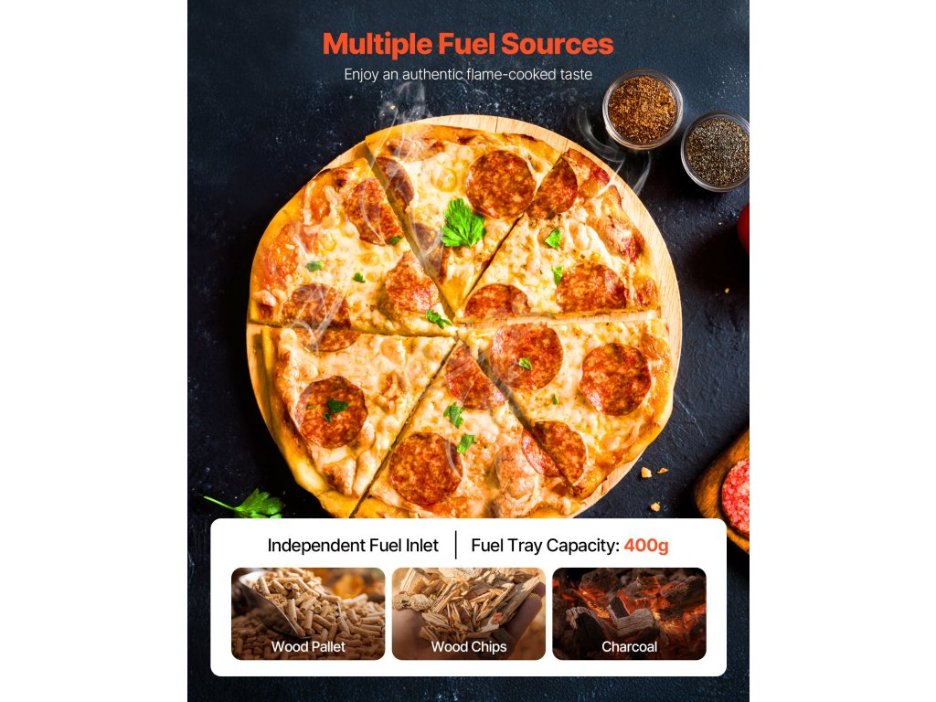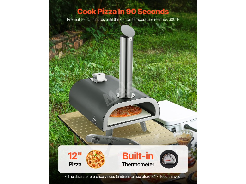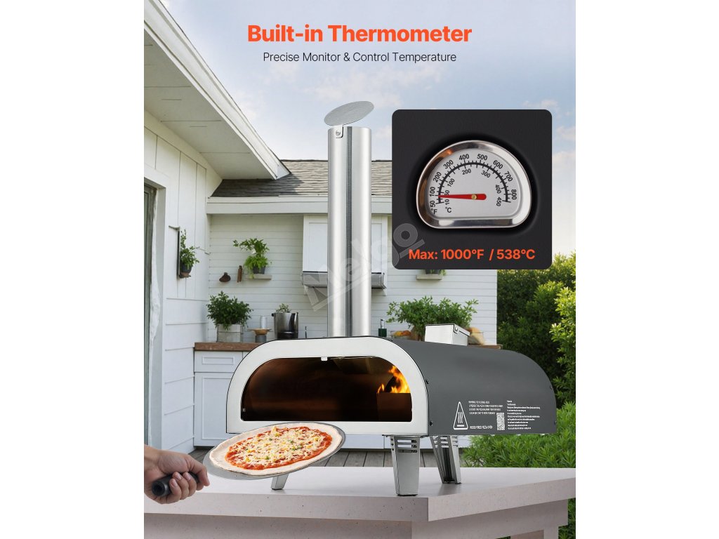Přenosná kamna na pizzu 12 palců, na dřevo/pelety, s teploměrem