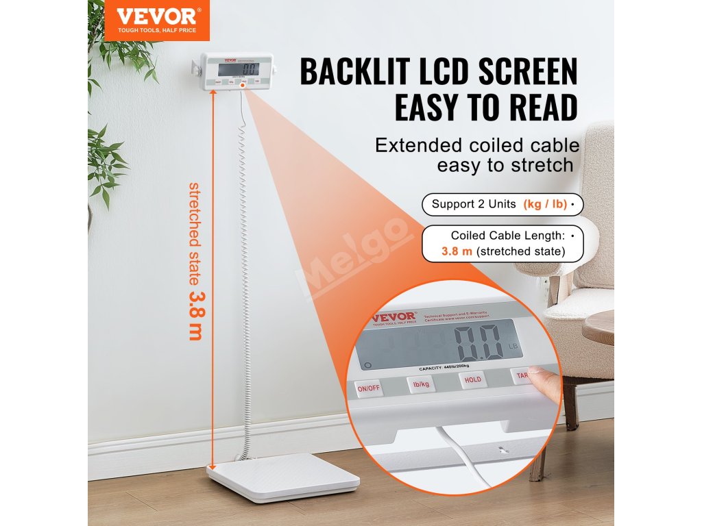 Přesně měřte, dobře žijte - přenosná lékařská váha VEVOR je vaším spolehlivým odborníkem na přesné sledování hmotnosti. Díky kapacitě až 440 kilogramů a několika praktickým funkcím poskytuje spolehlivé sledování hmotnosti pro domácí i profesionální použití.