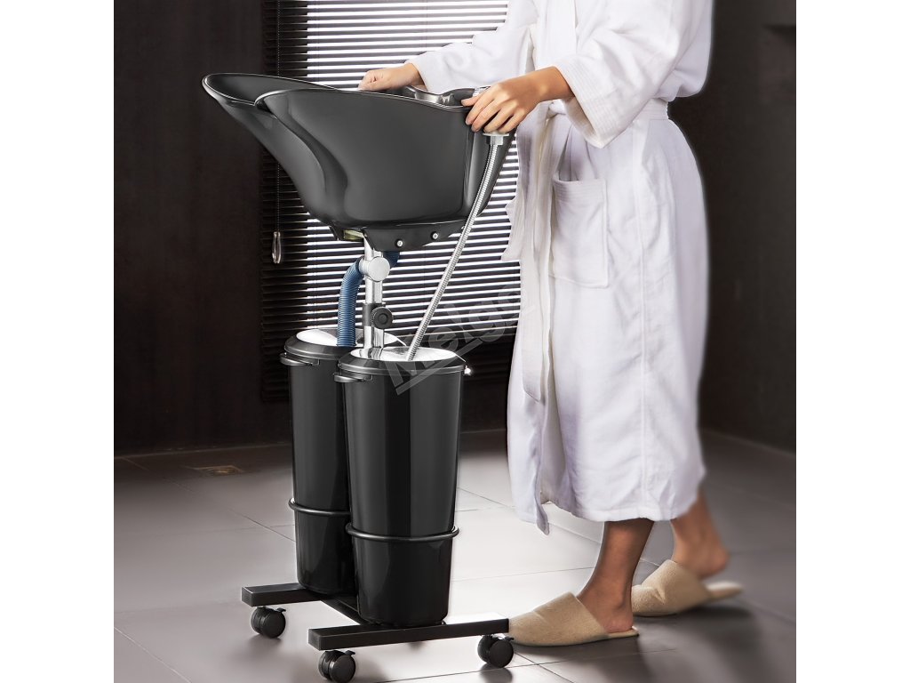 Přenosná miska na mytí vlasů s čerpadlem, 2 vědra, 2 sprchy