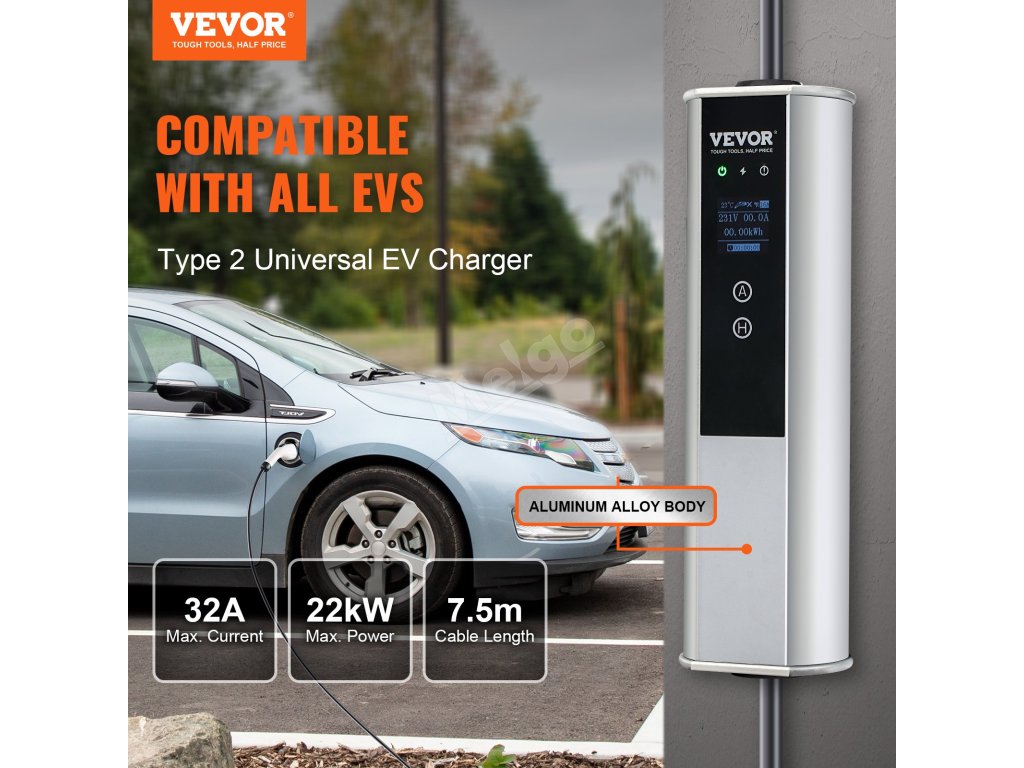 Představujeme přenosnou nabíječku VEVOR EV, která je kompatibilní se všemi elektromobily a plug-in hybridy splňujícími požadavky typu 2. Díky maximálnímu výkonu 22 kW, čtyřúrovňovému nastavení proudu (16 A / 20 A / 24 A / 32 A), inteligentnímu ovládání pomocí aplikace a 12hodinové rezervaci nabíjení se připravte na to, že každé nabíjení bude hračka!