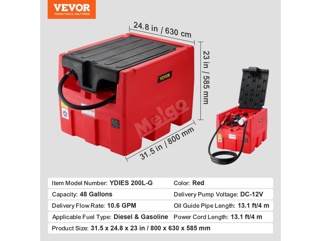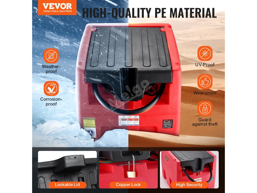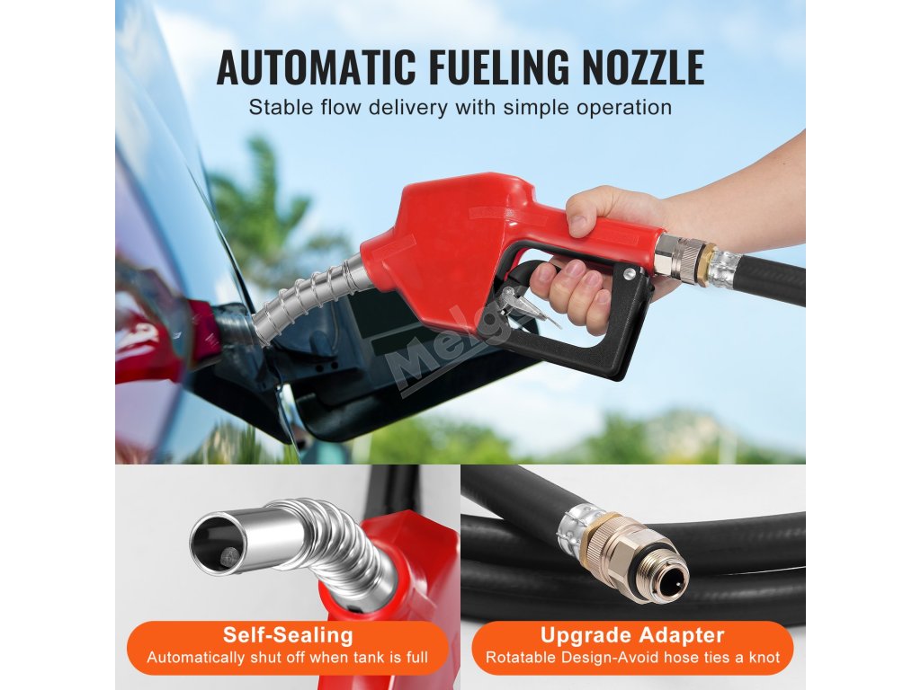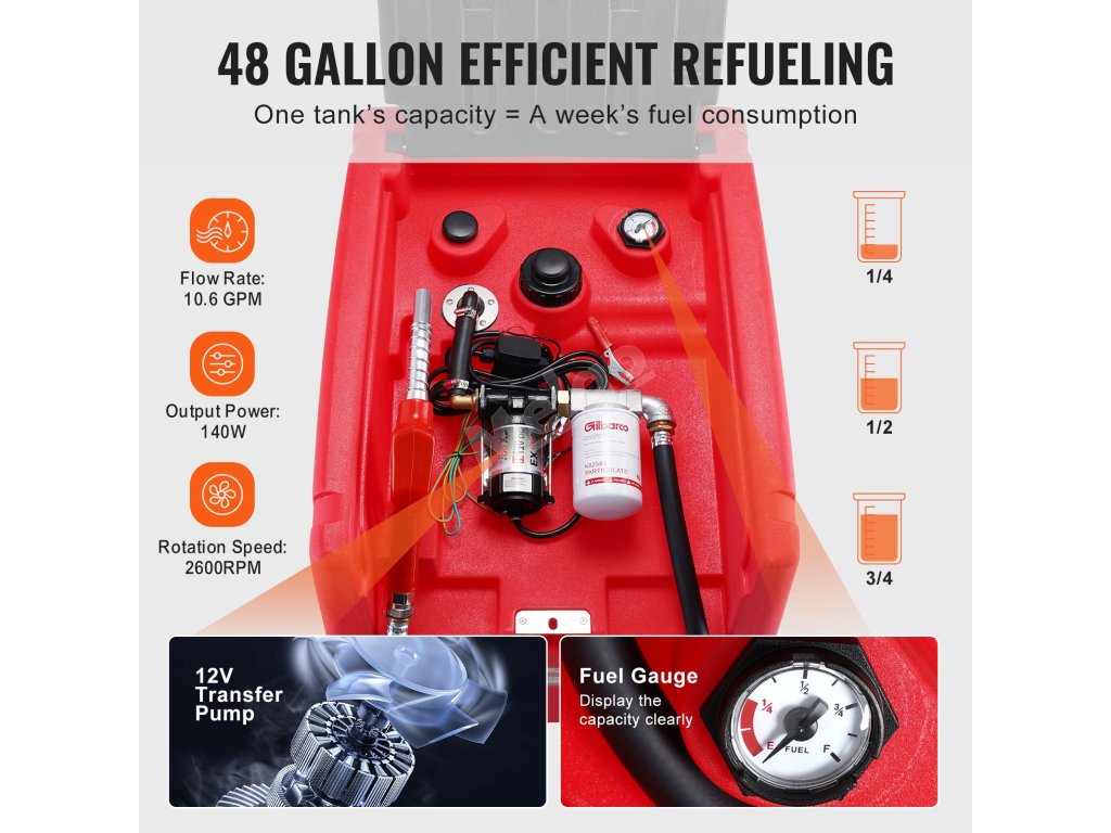 12voltové naftové čerpadlo dodává palivo rychlostí 10,6 galonu za minutu, což je rychlejší a šetří váš čas i energii. Palivová nádrž je vybavena osmistupňovou stupnicí, která vám pomůže sledovat objem paliva a umožní včasné doplnění.