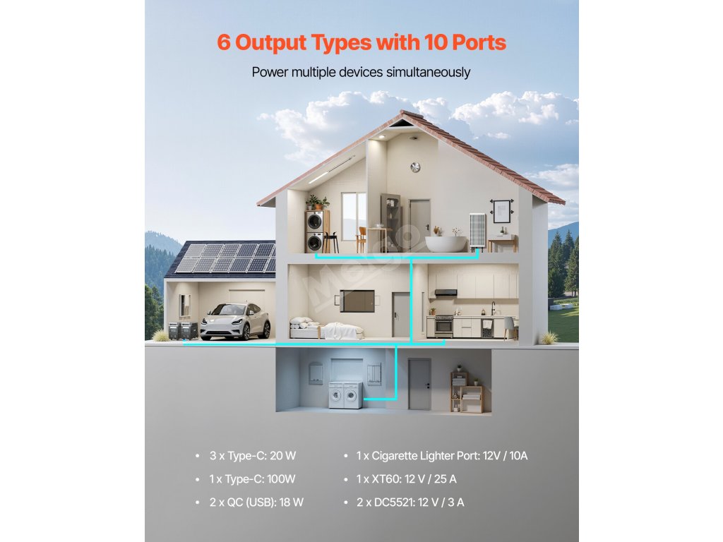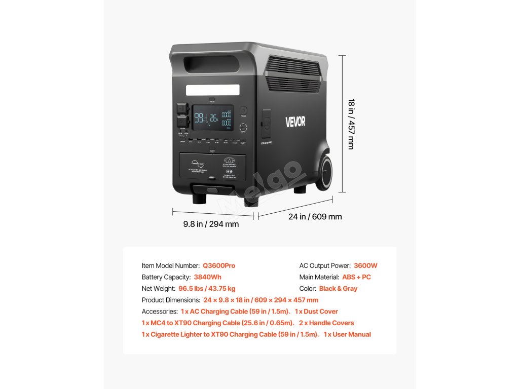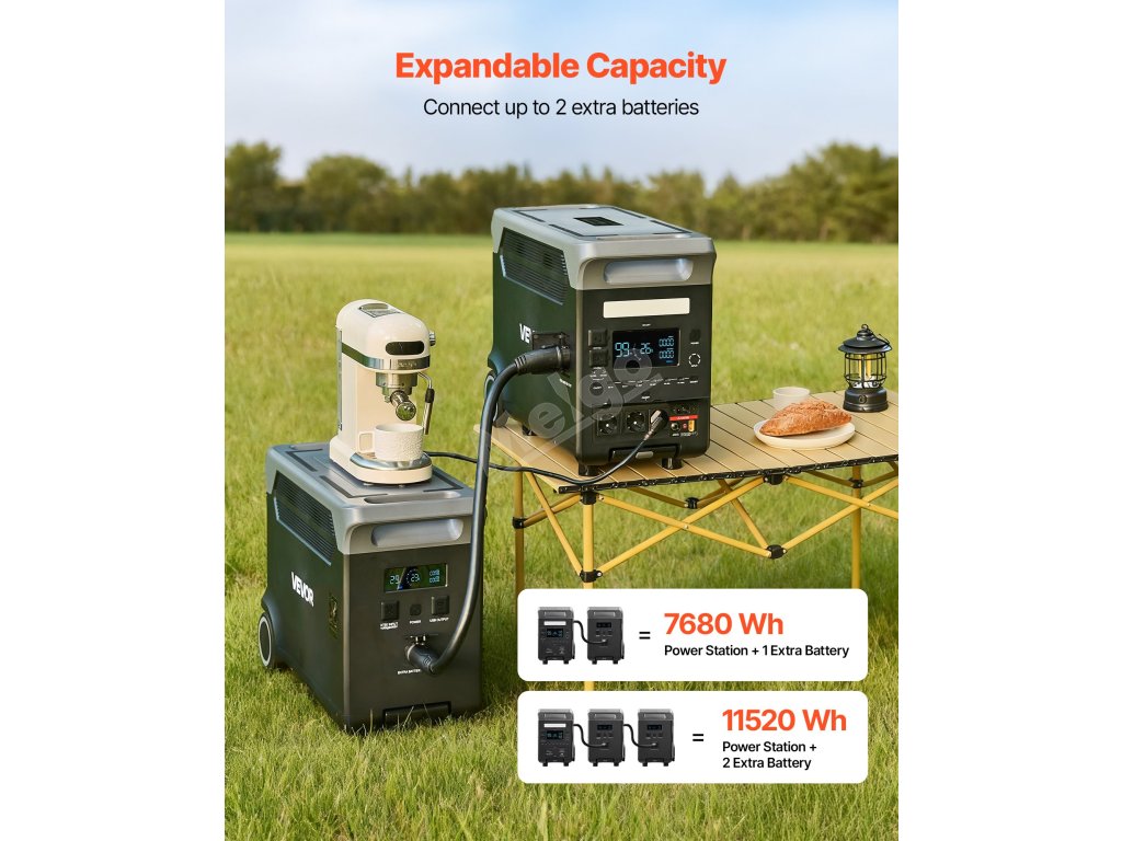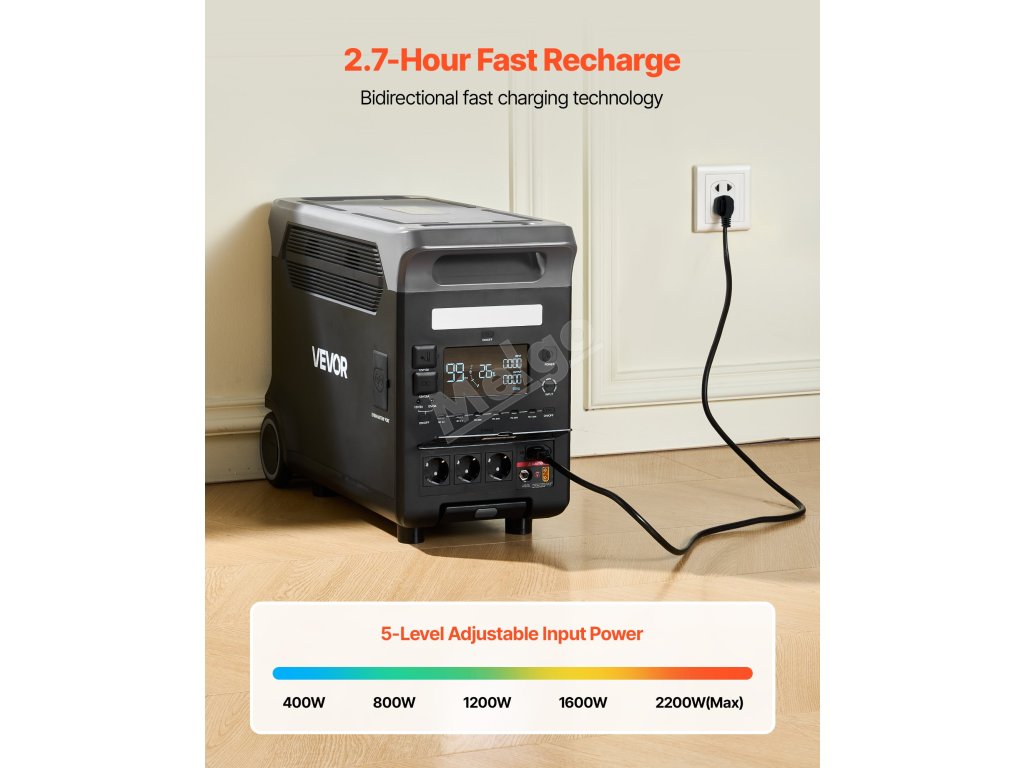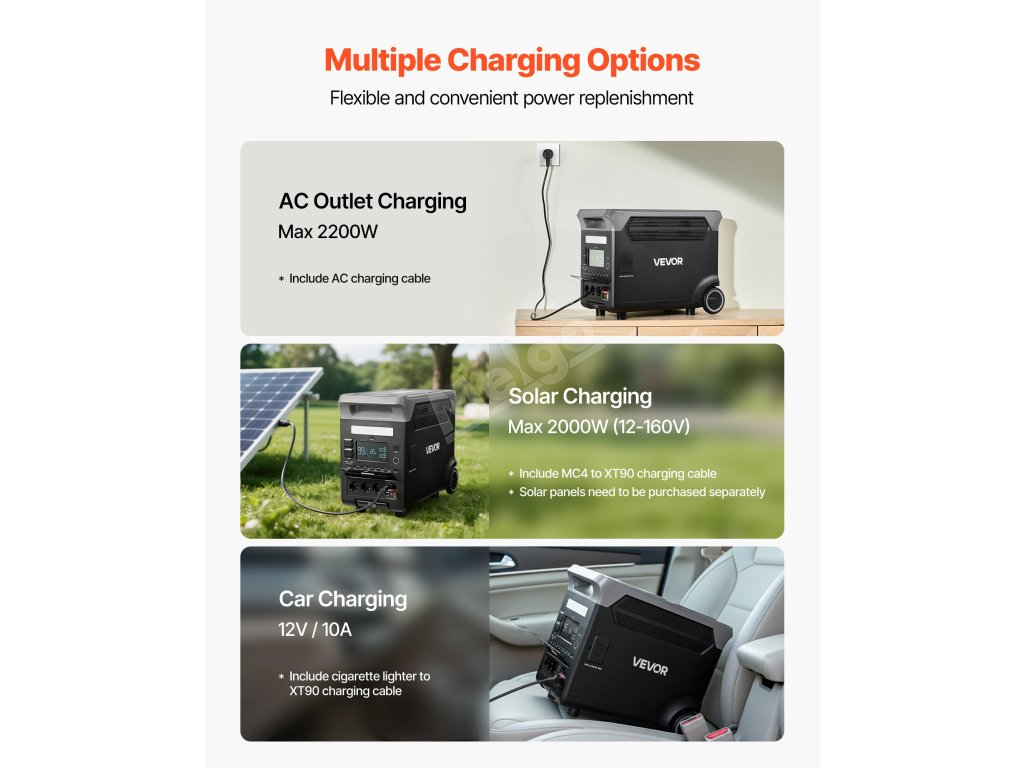 Přenosná napájecí stanice VEVOR 3600 W představuje spolehlivé řešení napájení na cestách. Díky 10 výstupním portům, vysokokapacitní baterii LiFePO₄ s kapacitou 3840 Wh, rozšiřitelné kapacitě a všestranným možnostem nabíjení poskytuje nepřetržité a spolehlivé napájení. Ideální pro kempování, venkovní setkání a rodinné výlety.