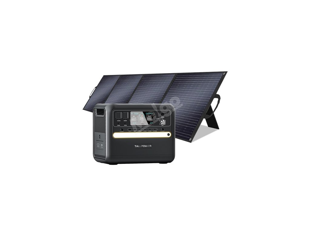 Přenosná napájecí stanice TALLPOWER V2400 + TP200 solární panel, 2160Wh, 2400W, UPS, LED, 13 výstupů - černá