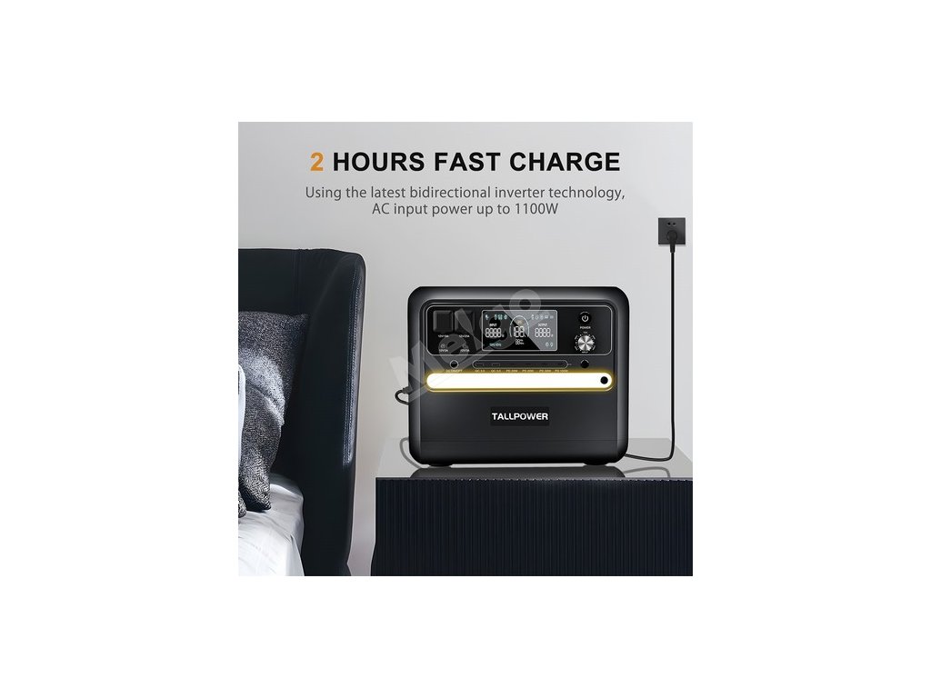 Přenosný napájecí zdroj TALLPOWER V2400 má mimořádně velkou kapacitu 2160Wh a střídavý výkon 2400 W, takže jej lze použít nejen pro malé spotřebiče, ale i pro velké spotřebiče, jako jsou mikrovlnné trouby, bojlery, elektrické deky a autochladničky.