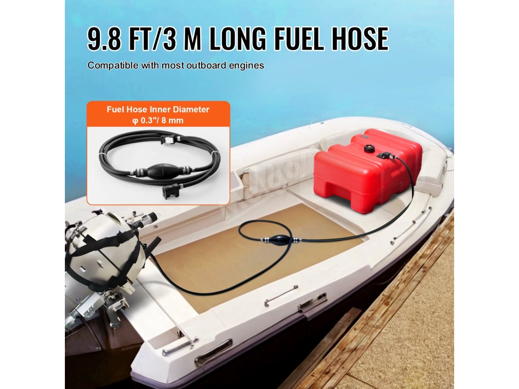 Rozlučte se s problémy s kompatibilitou! Palivová nádrž pro lodě se dodává s palivovou hadicí vhodnou pro použití s většinou rozhraní palivových nádrží pro lodě.
