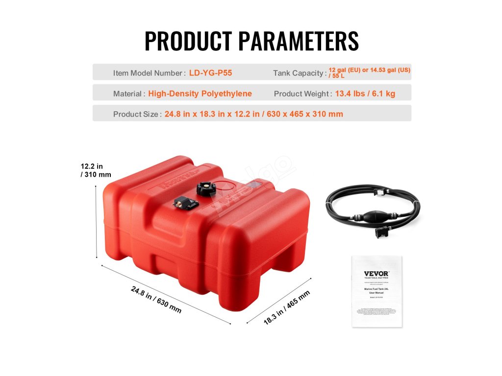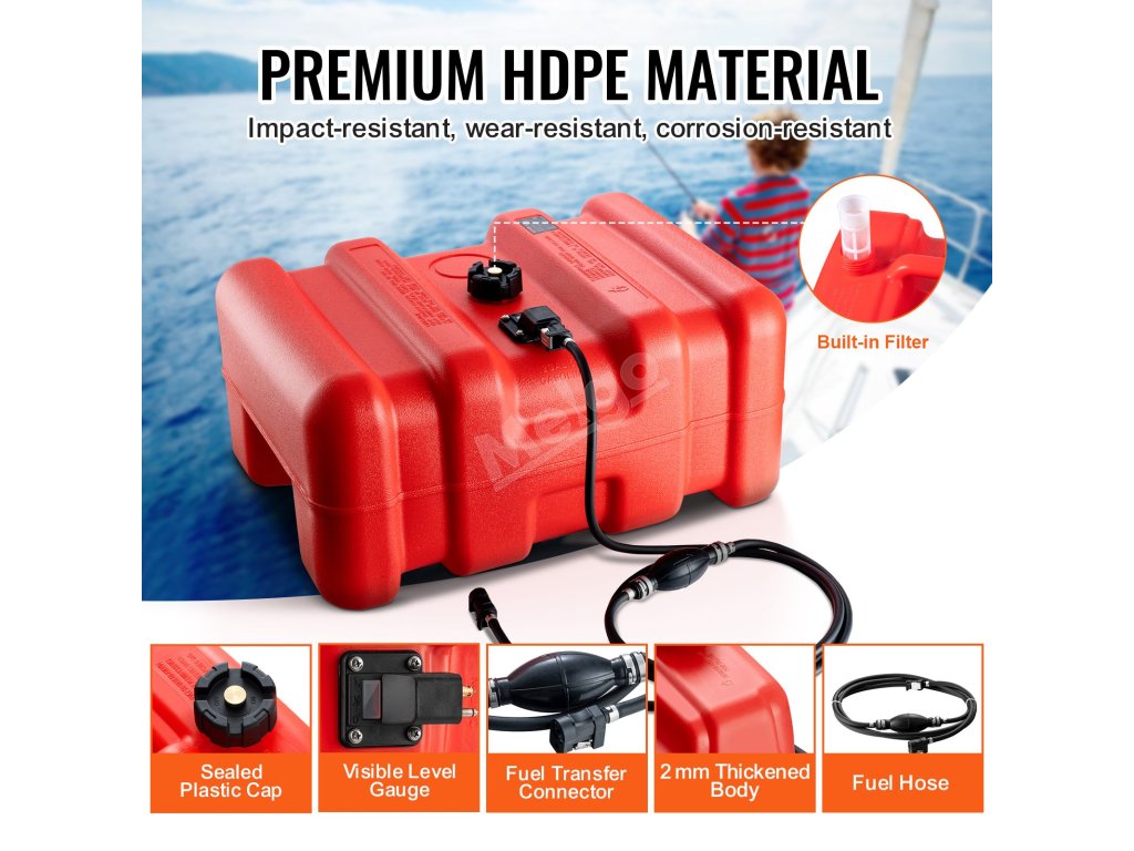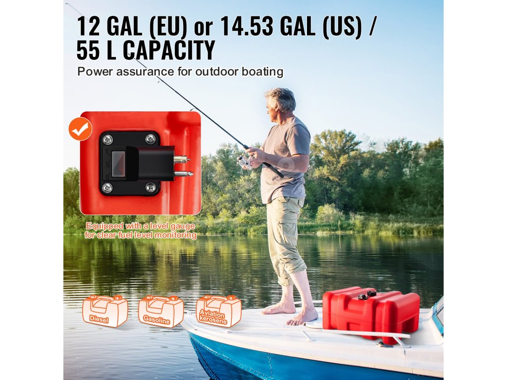 Jste připraveni na venkovní zábavu na lodi? Naše velkokapacitní palivová nádrž na lodní palivo o objemu 14,53 gal/55 l vám poskytne záložní podporu pro vaše dobrodružství na lodi v přírodě.