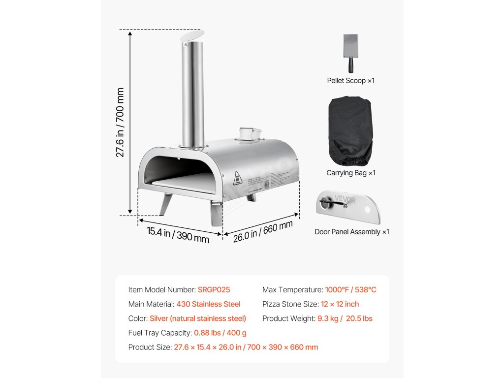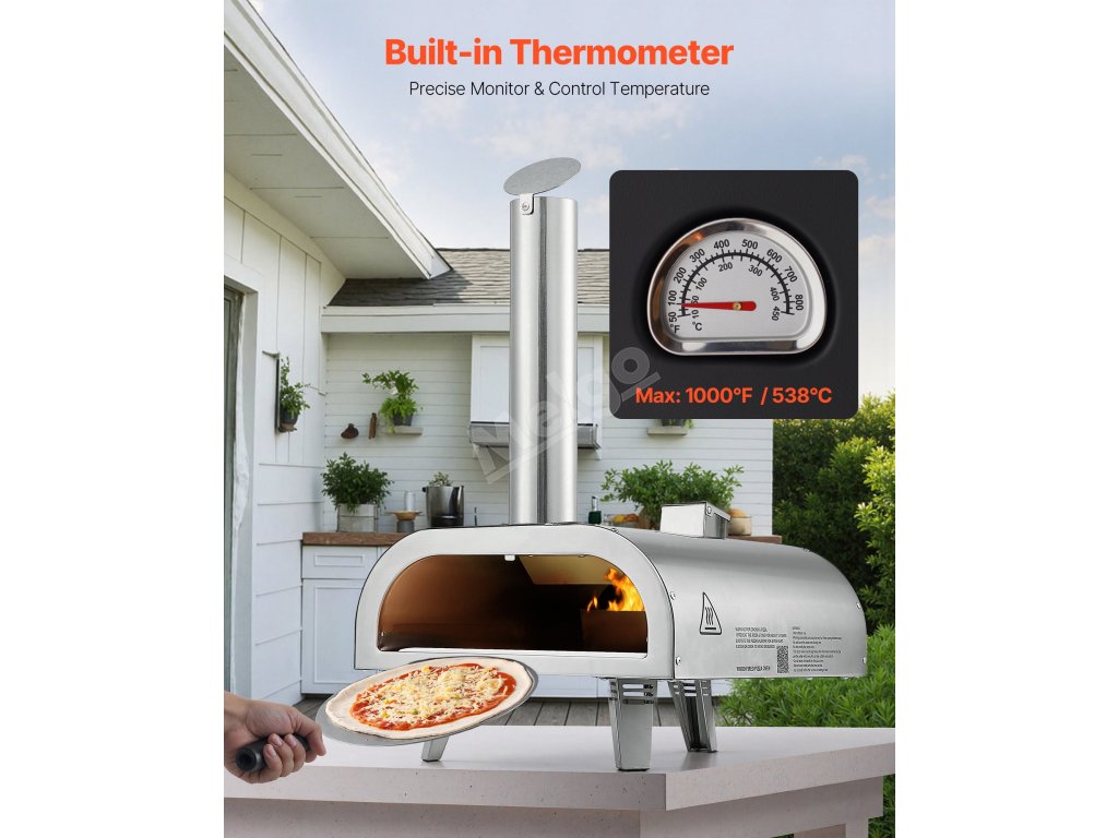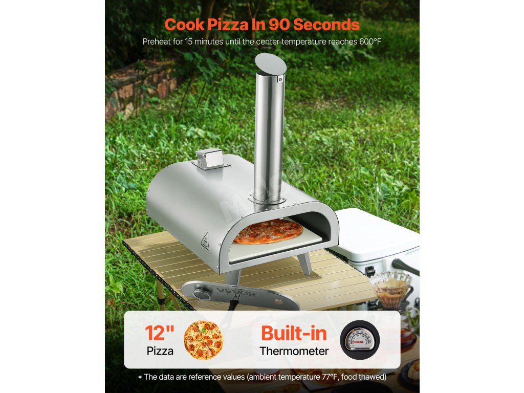 Přenosná peletová kamna na pizzu 12" nerezová s teploměrem a kamenem