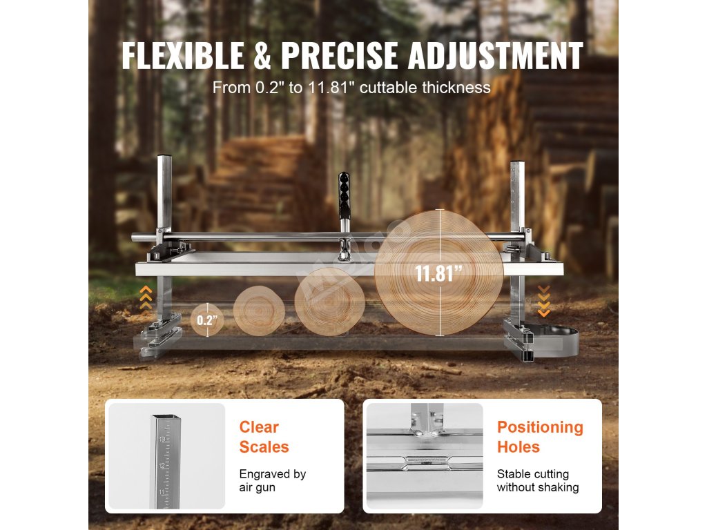 Přenosná pila na kulatinu, vodítko 35.6–91.4 cm, tloušťka 0.5–30 cm