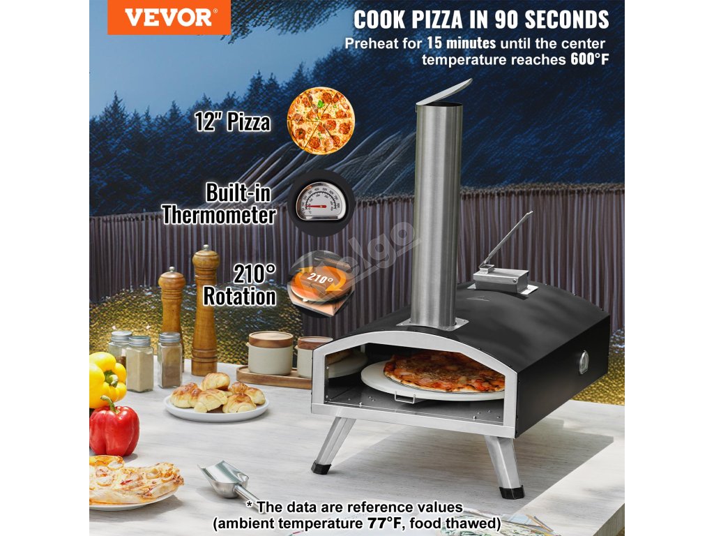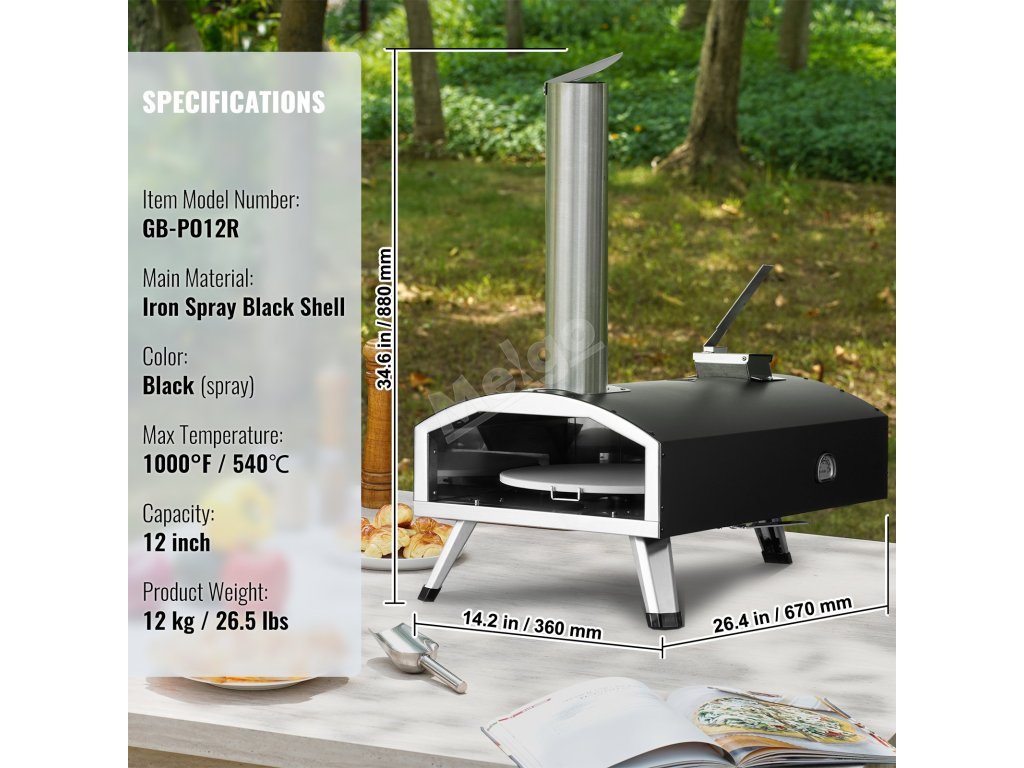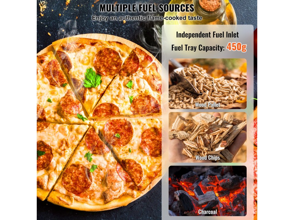 Přenosná pizza kamna 30.5 cm na dřevěné pelety kovová na kempování