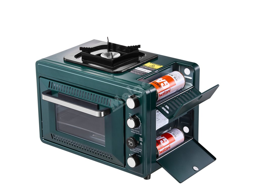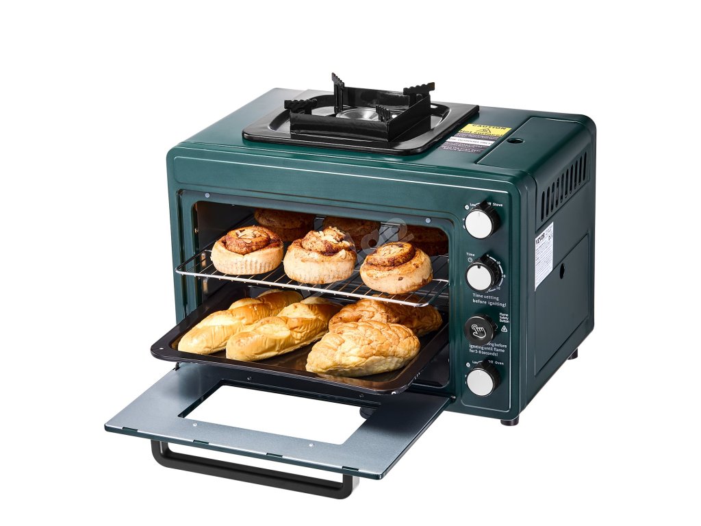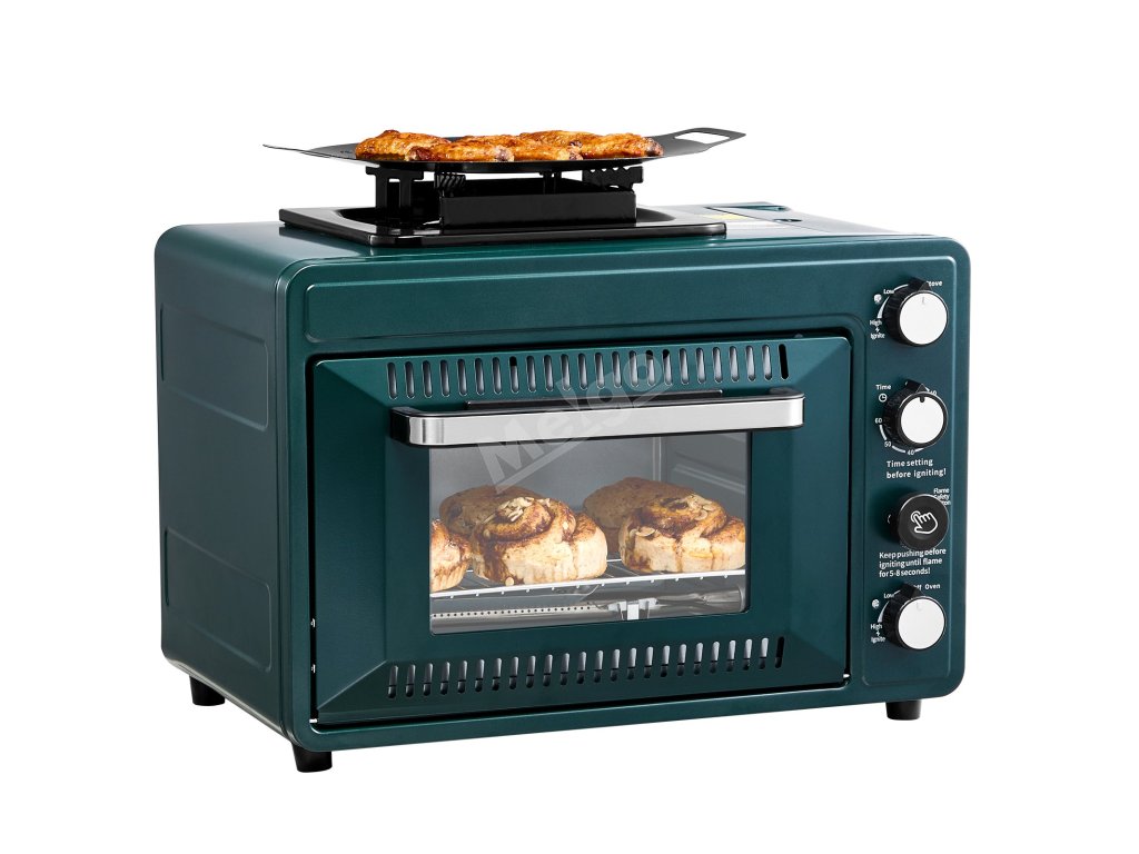 Přenosná plynová trouba s vařičem 2v1, časovač 60 min, rošt a pekáč