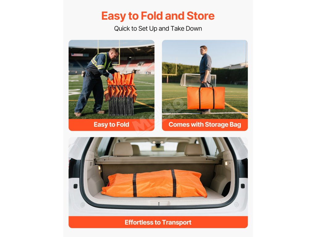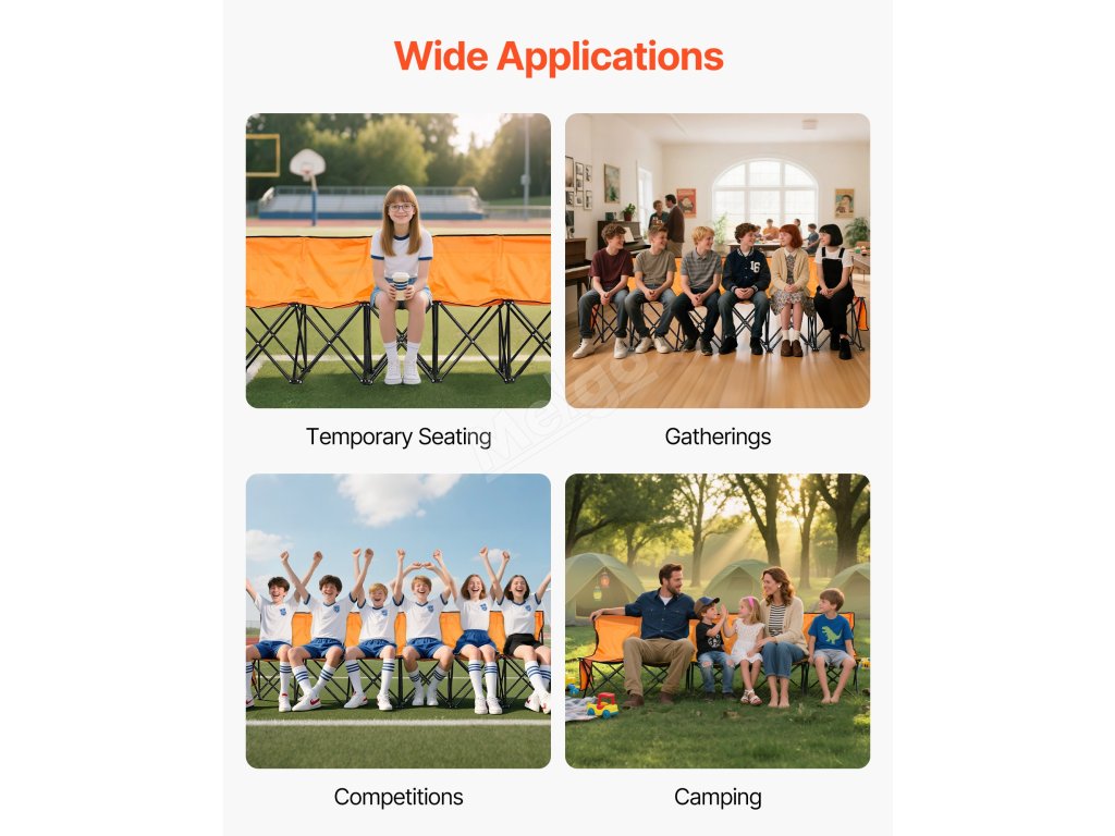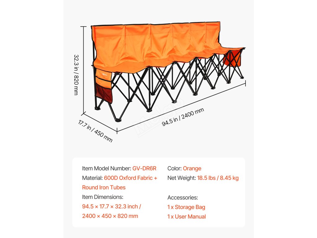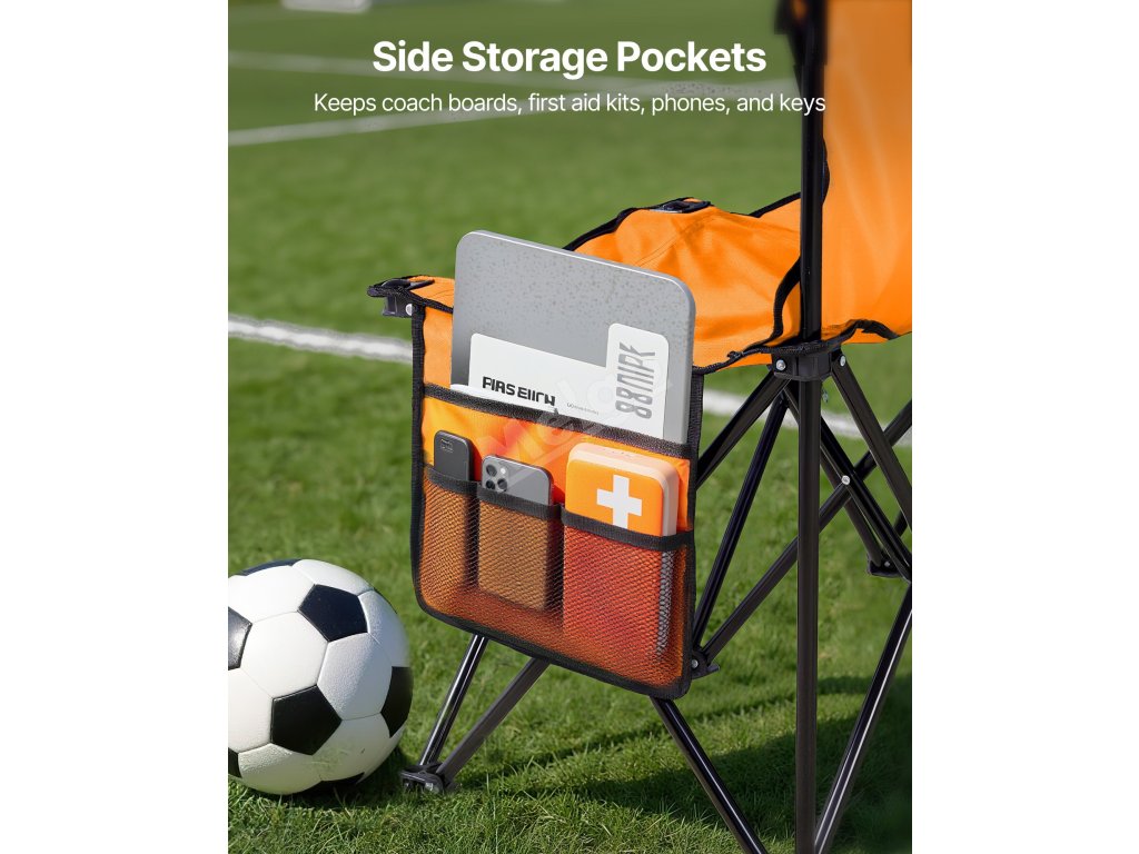 Tento produkt je vyroben z odolné tkaniny 600D oxford se zesílenými podpůrnými tyčemi pro větší pevnost a stabilitu. Díky skládací konstrukci je ideální pro sportovní akce, večírky, venkovní kempování nebo jakoukoli příležitost, kdy potřebujete posezení u postranní čáry.