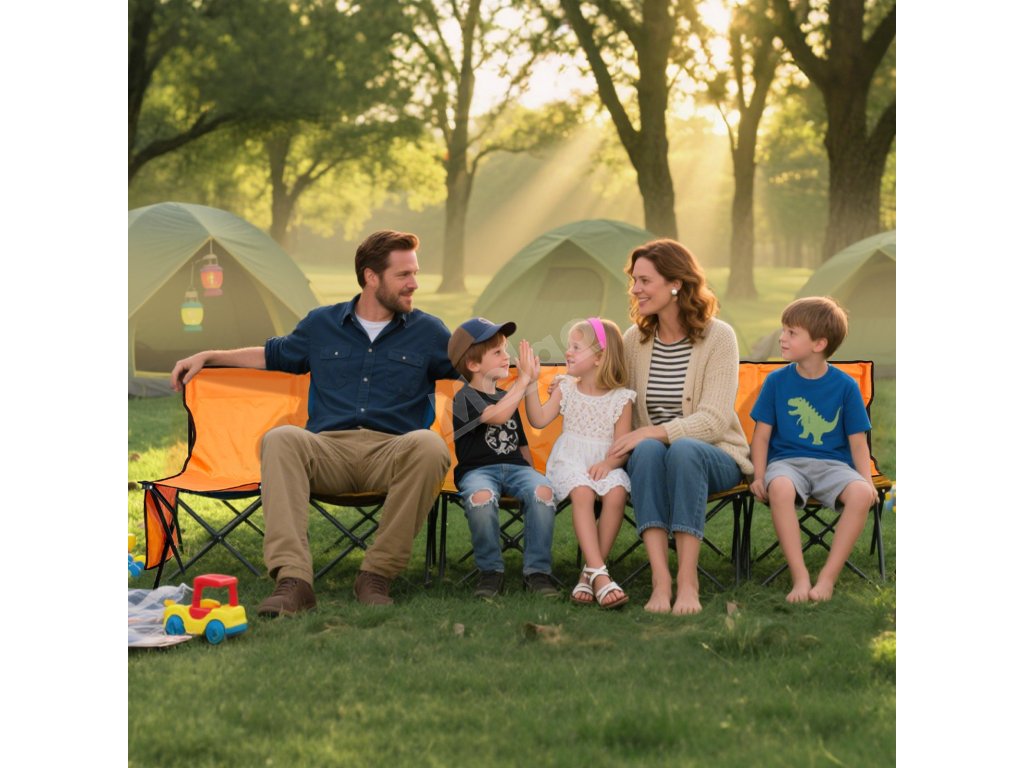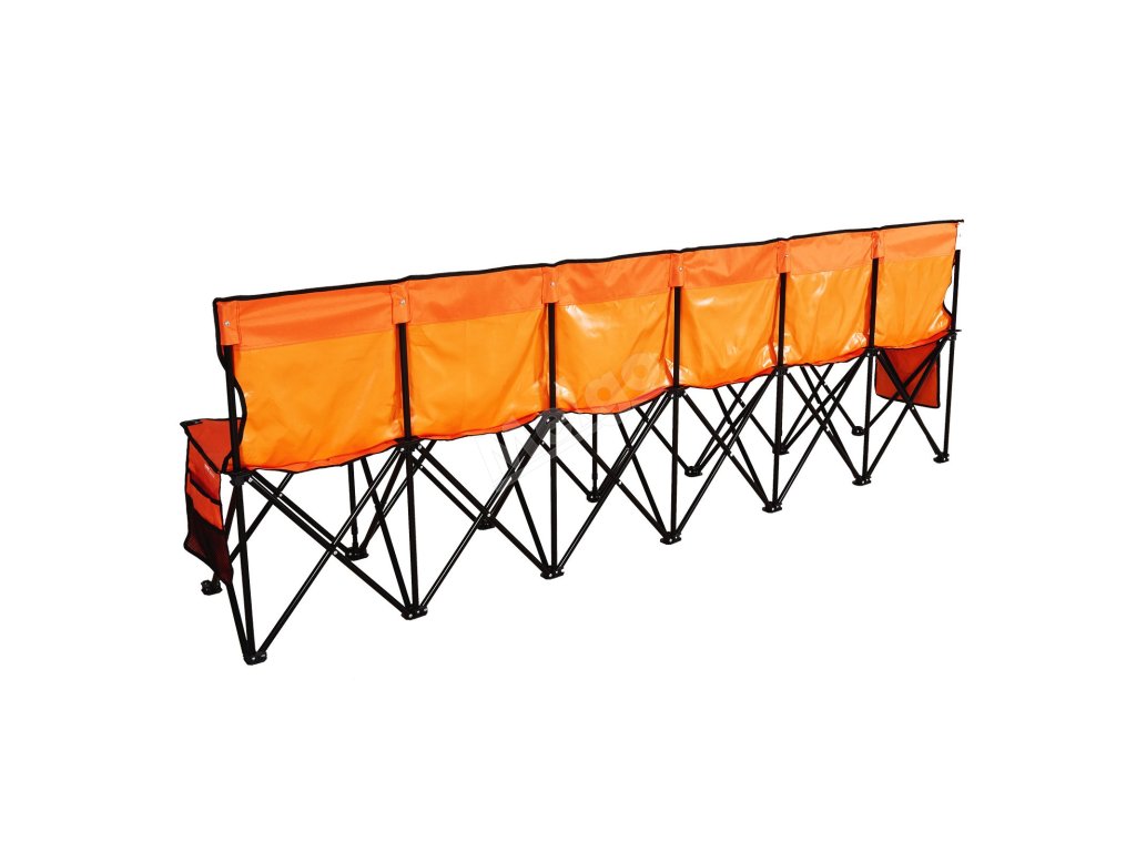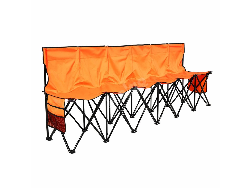 Přenosná skládací lavička, 6 míst, opěradlo, boční kapsy, oranžová