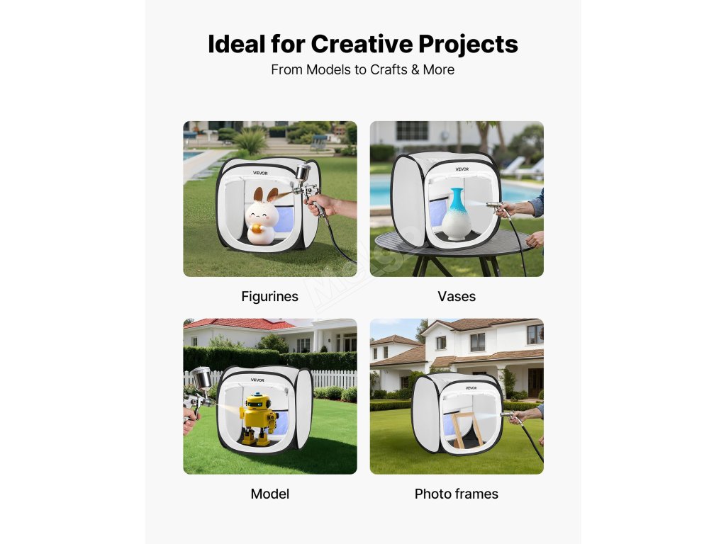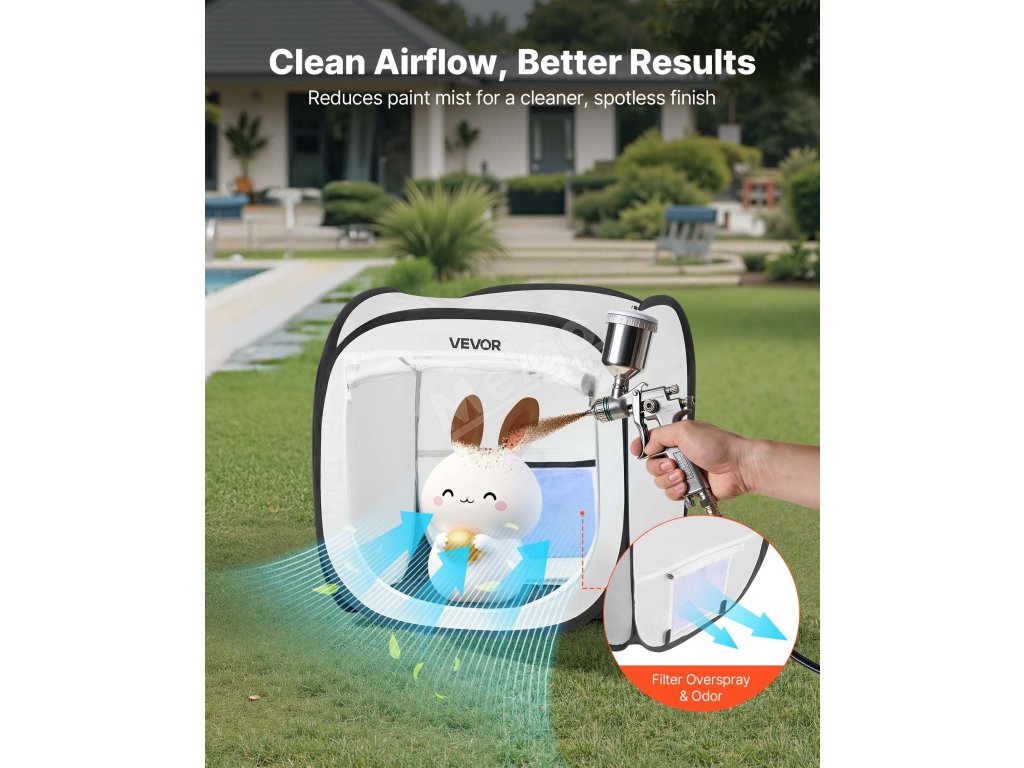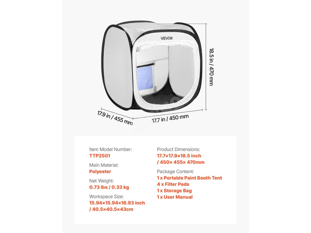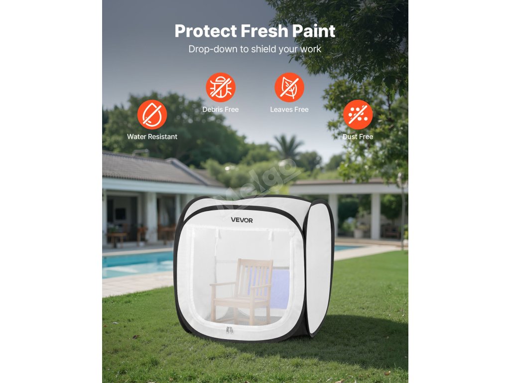 Náš přenosný malířský stan nabízí pracovní prostor o rozměrech 15,94 (D) x 15,94 (Š) x 16,93 (V) palců/40,5 x 40,5 x 43 palců s vyskakovací konstrukcí, která nevyžaduje žádné nastavení. Je skládací pro snadné skladování a rychlé sbalení během několika minut, má plynulé proudění vzduchu a voděodolnou tkaninu, ideální pro nábytkové díly a kutilské projekty.