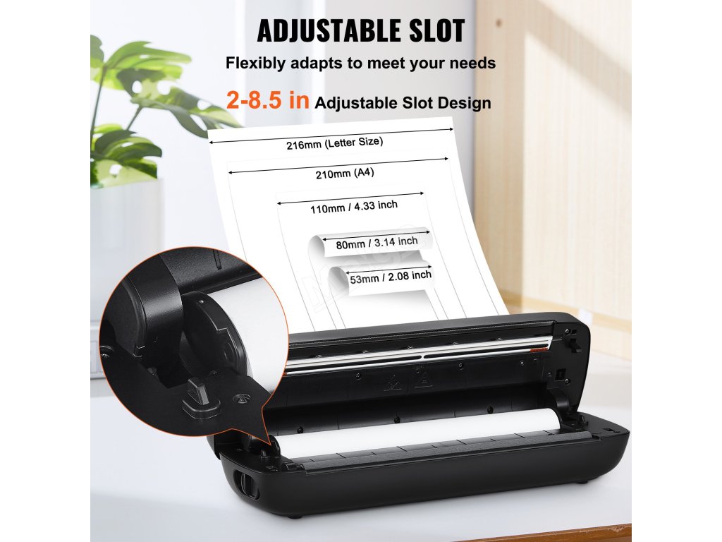 Snadno nastavíte štěrbinu pro tisk na papír o velikosti od 2 do 8,5 palce. Tato přenosná bezdrátová tiskárna splní všechny vaše tiskové potřeby a stane se skvělým doplňkem vašeho pracovního prostoru.