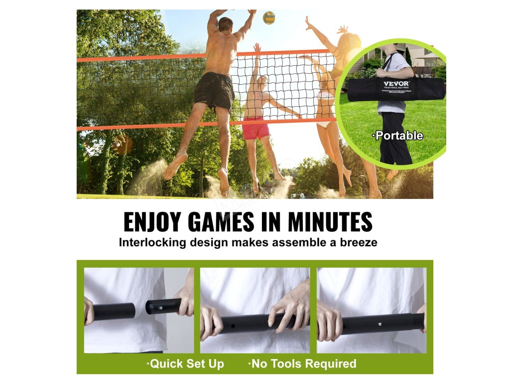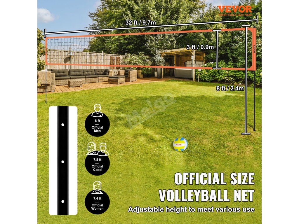 Tato profesionální volejbalová sada se může pochlubit přizpůsobitelnou výškou, která splňuje řadu oficiálních herních norem. Ať už se připravujete na oficiální zápasy žen ve výšce 7,4 stopy, na oficiální zápasy koedukovaných týmů ve výšce 7,8 stopy nebo na oficiální turnaje mužů ve výšce 8 stop, je vhodná pro hráče všech úrovní.