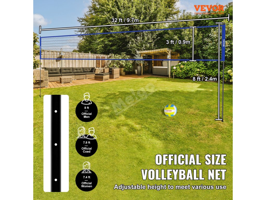 Tato profesionální volejbalová sada se může pochlubit přizpůsobitelnou výškou, která splňuje řadu oficiálních herních norem. Ať už se připravujete na oficiální zápasy žen ve výšce 7,4 stopy, na oficiální zápasy koedukovaných týmů ve výšce 7,8 stopy nebo na oficiální turnaje mužů ve výšce 8 stop, je vhodná pro hráče všech úrovní.