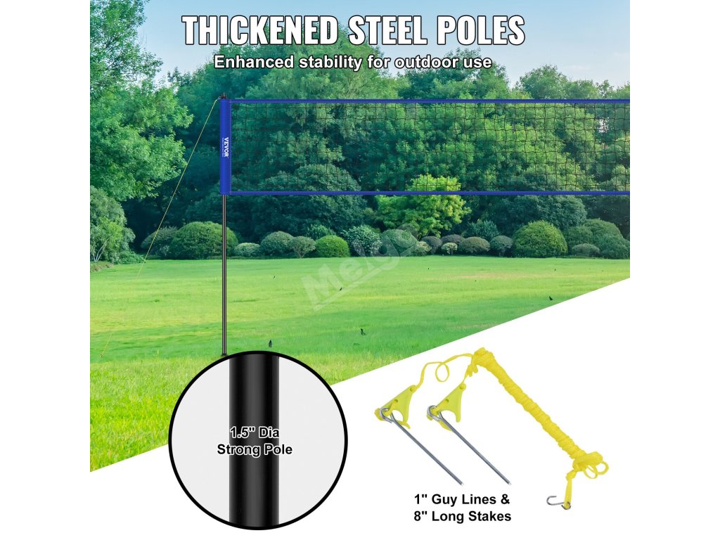Sada volejbalové sítě obsahuje zesílené tyče, které zajišťují stabilitu, zejména ve venkovním prostředí. Tyto tyče jsou navrženy tak, aby odolaly různým povětrnostním podmínkám a zajistily stabilní a bezpečnou hru.