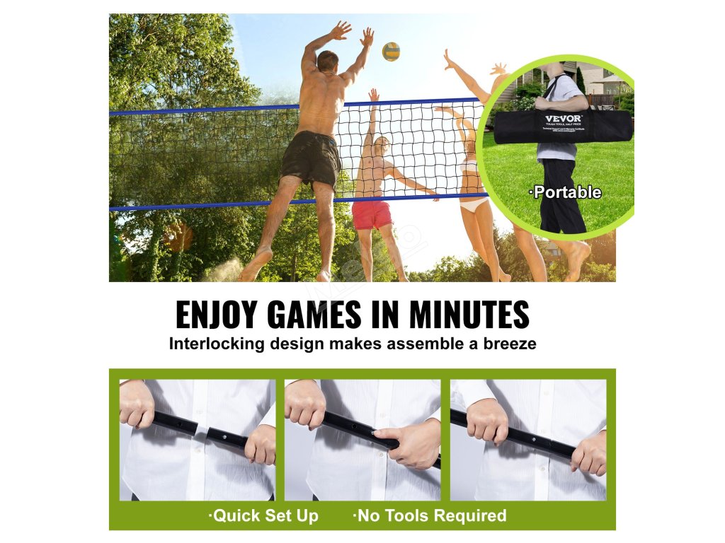 Přenosná volejbalová souprava: síť, nastavitelná výška, míč a pumpa
