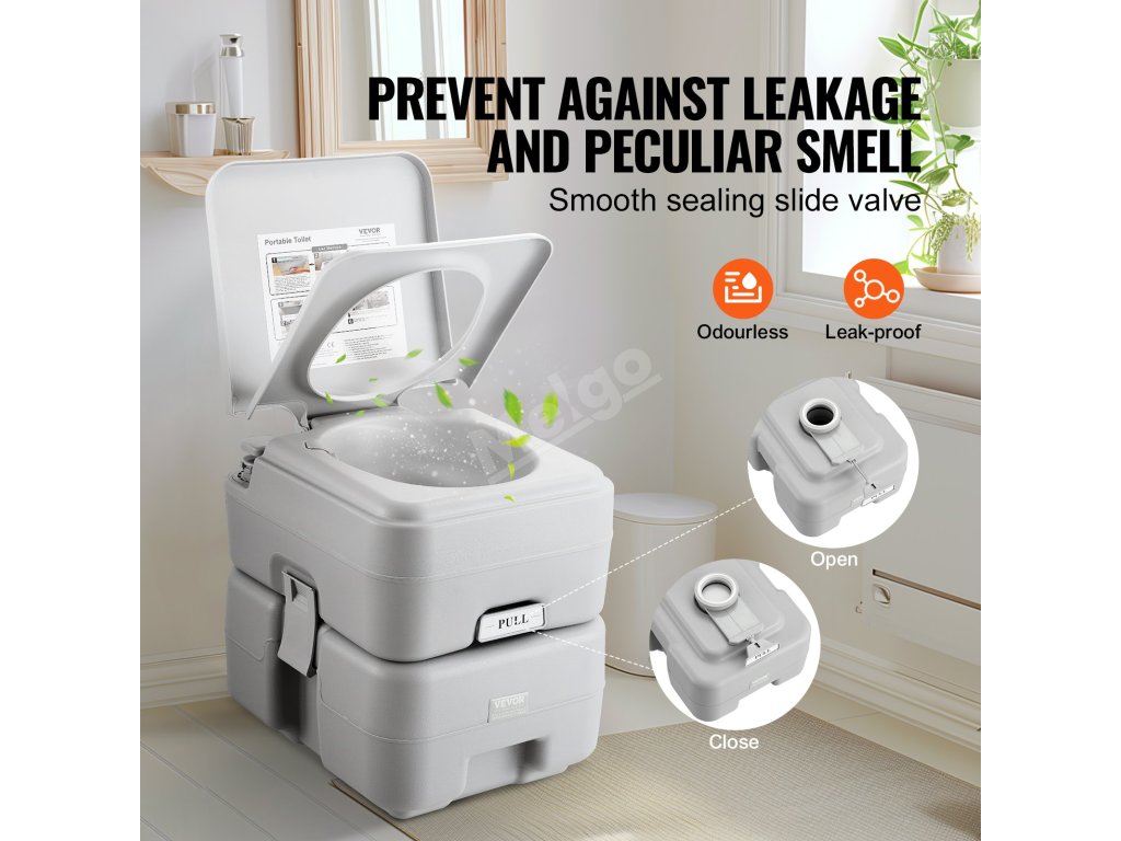 Stačí ji naplnit vodou, zatáhnout za posuvný ventil, čímž se otevře prostor toalety, a je připravena k okamžitému použití.