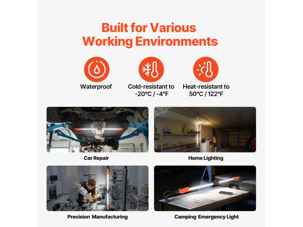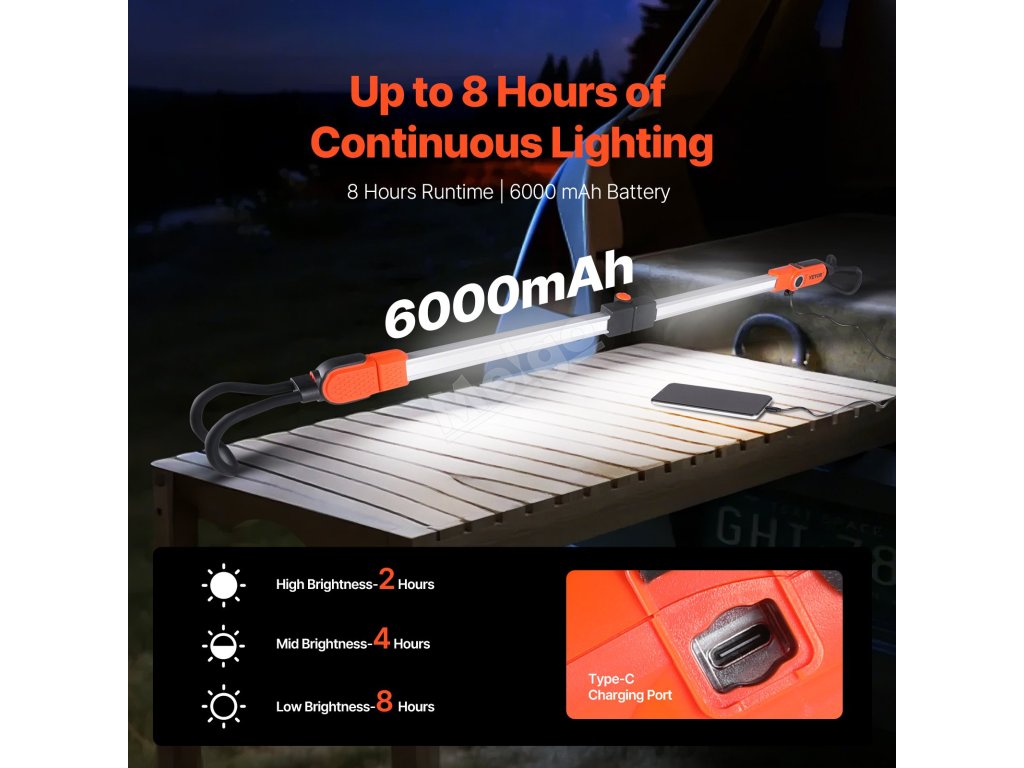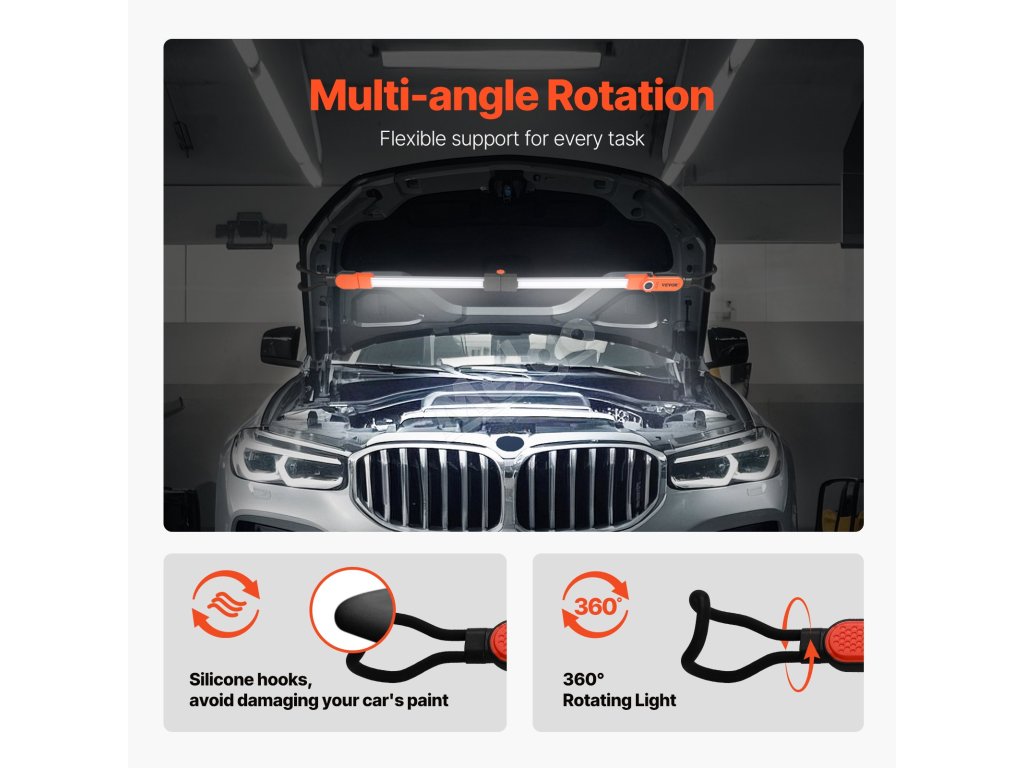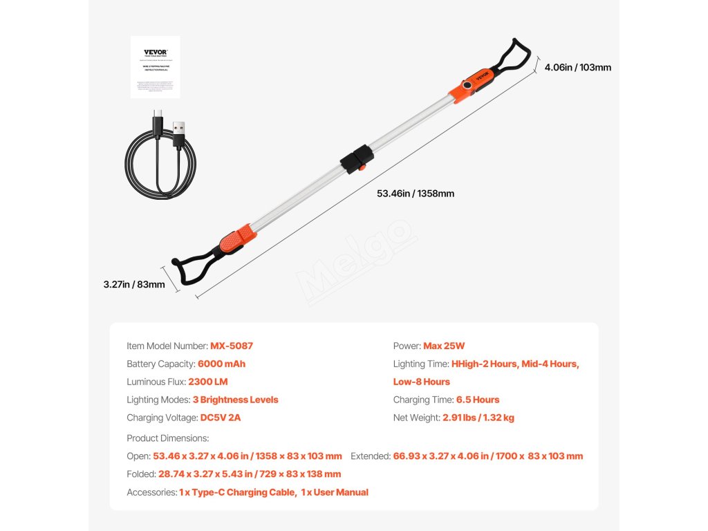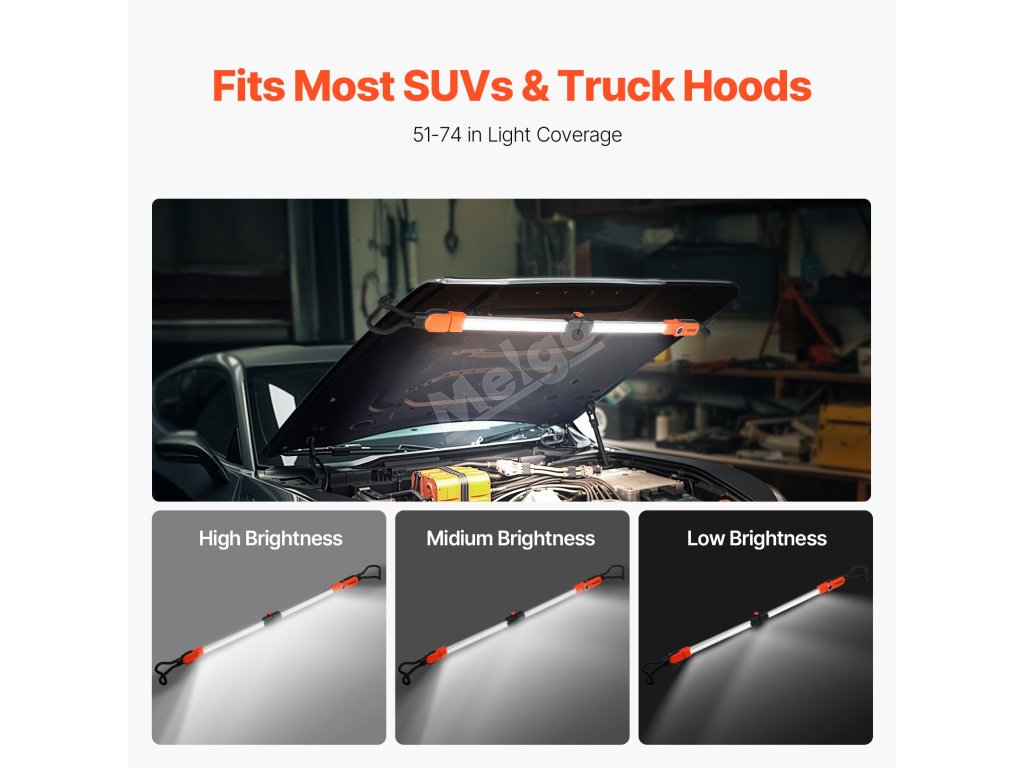 Tato výsuvná a skládací pracovní světelná lišta nabízí 2300 lumenů s pokrytím 51-74 palců, což je skvělé pro SUV a nákladní vozidla.25W LED dioda má tři úrovně jasu. Díky baterii s kapacitou 6000 mAh a nabíjení Type-C vydrží svítit 2 hodiny na vysoké, 4 hodiny na střední a 8 hodin na nízké úrovni, což je ideální pro opravy automobilů.
