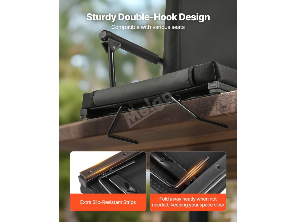 Toto sedadlo na stadion je vybaveno dvěma skrytými háčky pod židlí, které lze v případě potřeby vytáhnout, aby bylo stabilní na tribunách, lavičkách nebo rovných plochách. Vychutnejte si pohodlné sezení a spolehlivou oporu při sportovních událostech, koncertech nebo venkovních aktivitách, ať už jdete kamkoli.