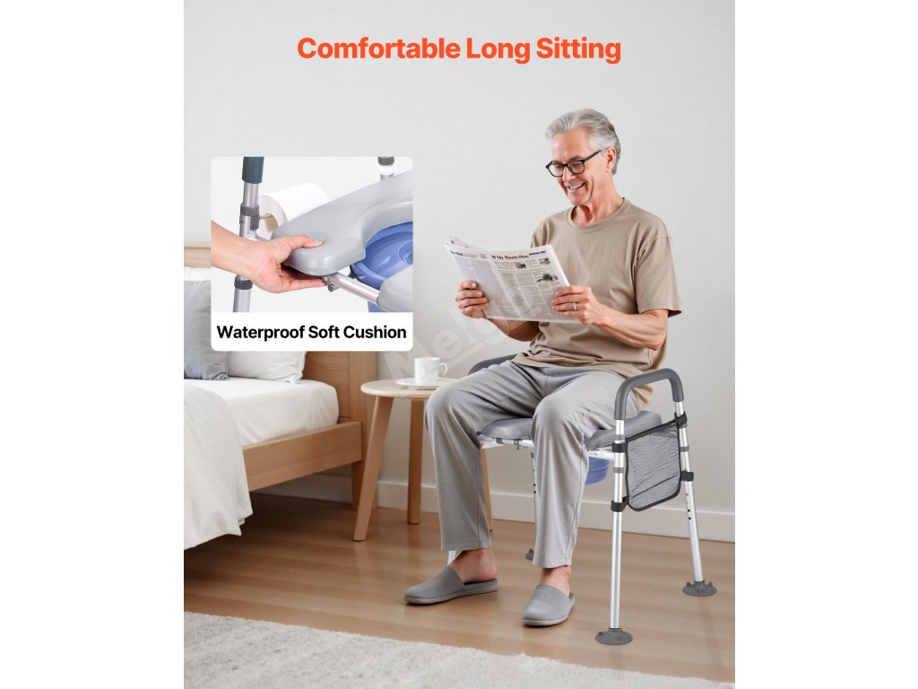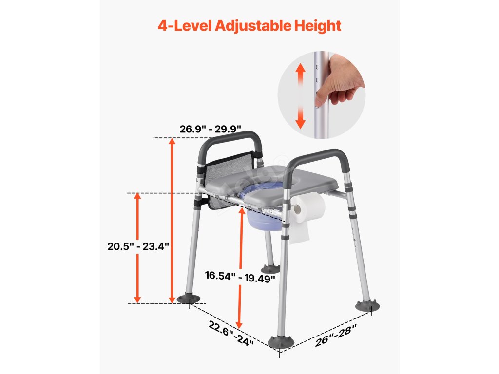 Přenosné toaletní křeslo pro seniory, nosnost 227 kg, 4v1, kbelík 5 l