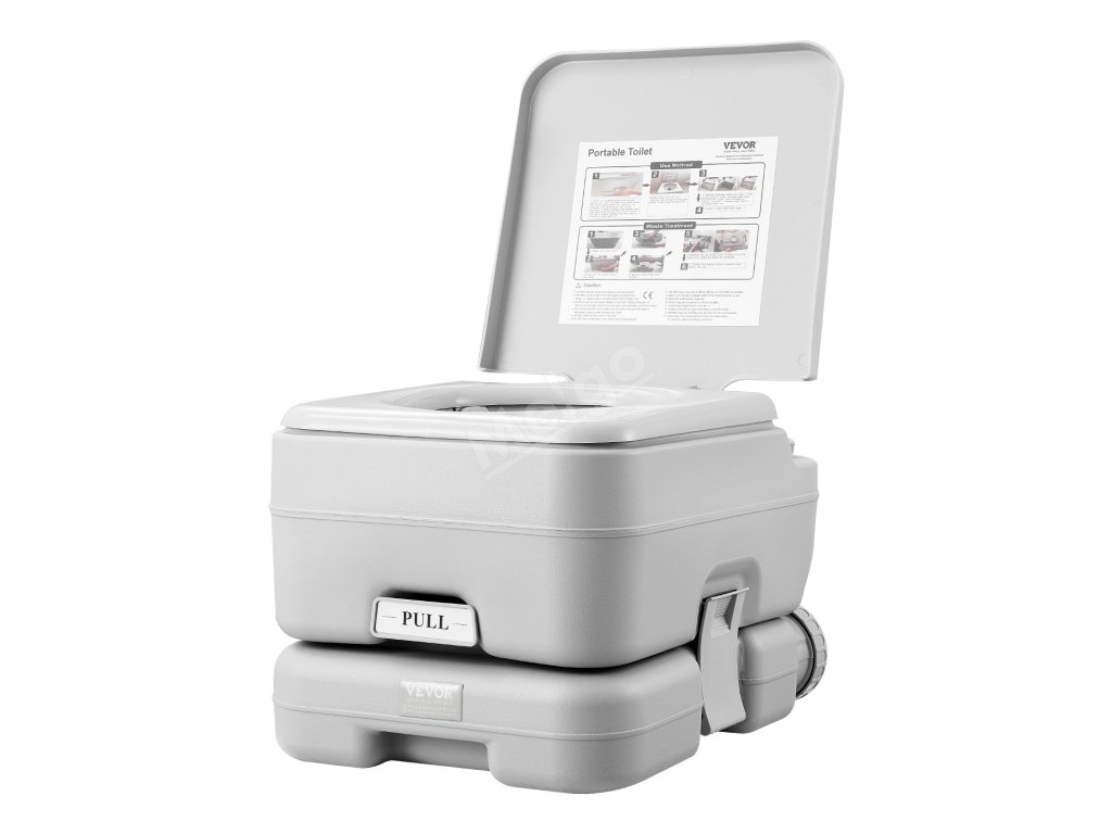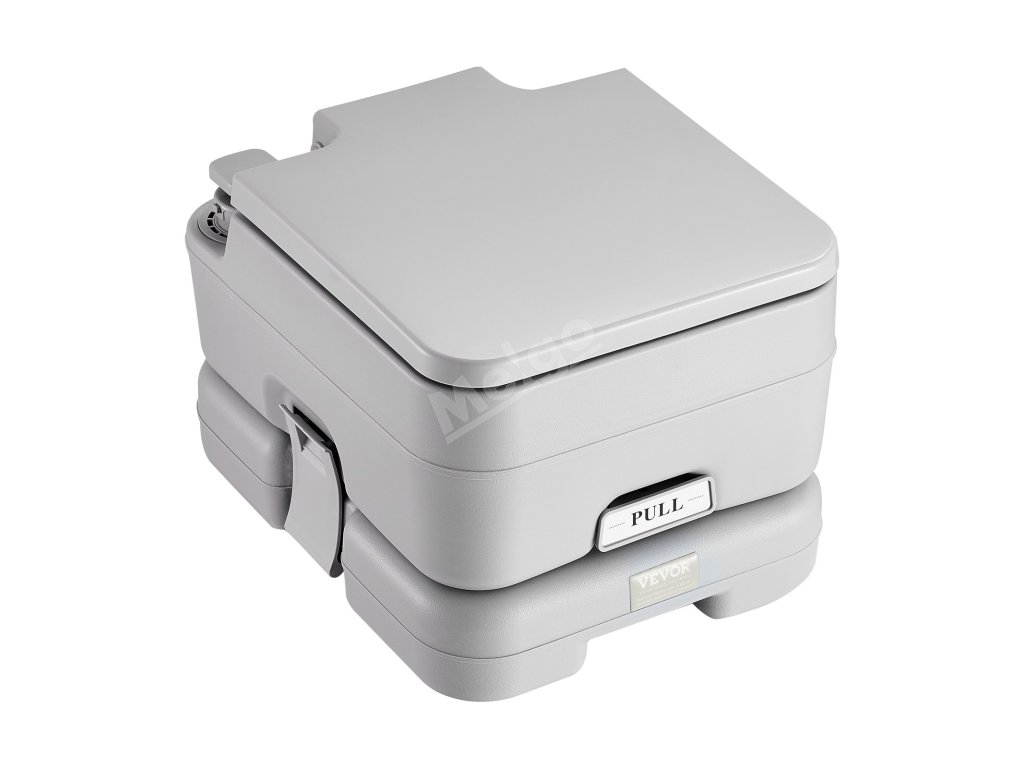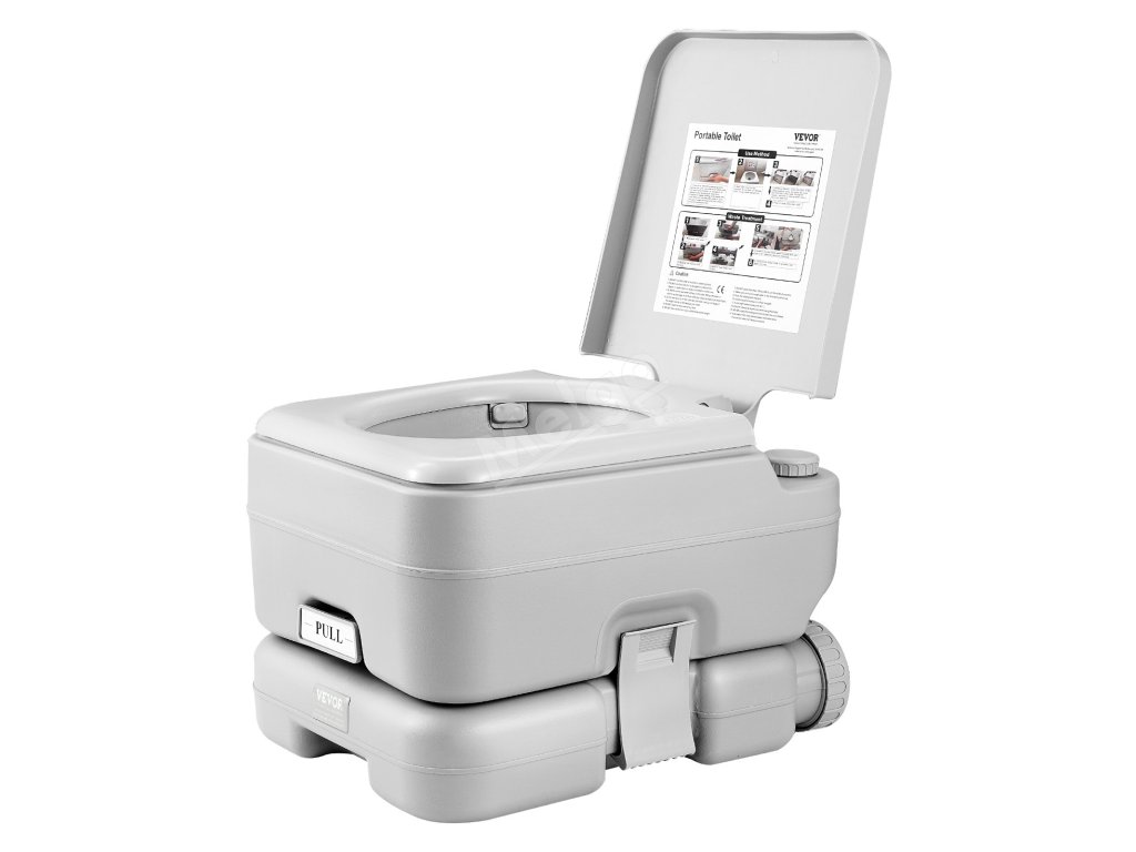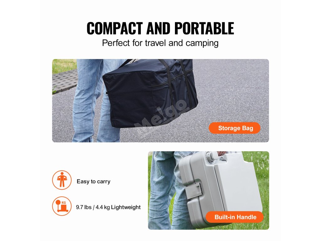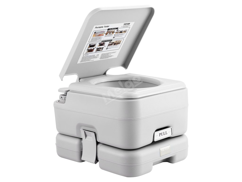 Tato přenosná toaleta má odnímatelnou splachovací nádrž o objemu 2,6 gal a odpadní nádrž o objemu 3,2 gal, která se může pochlubit nosností 440 lb. Je ideální pro těhotné ženy a starší osoby, protože poskytuje pohodlné sezení. Díky svému kompaktnímu provedení je ideální pro použití v obytných vozech, lodích, nákladních automobilech, dodávkách, při kempování a na cestách.