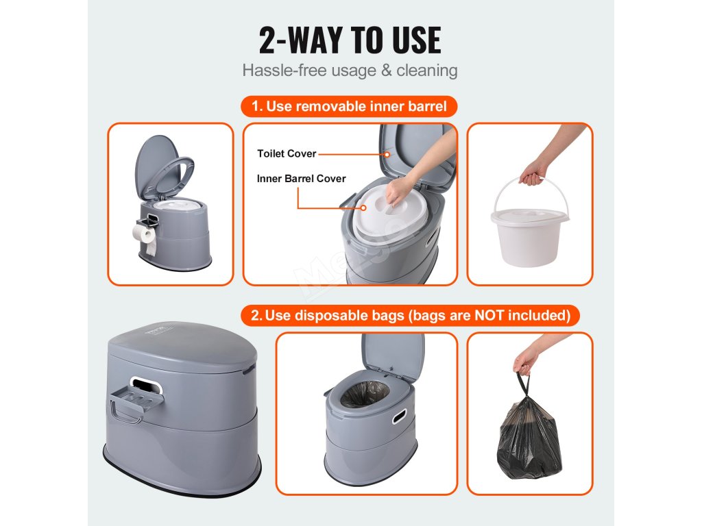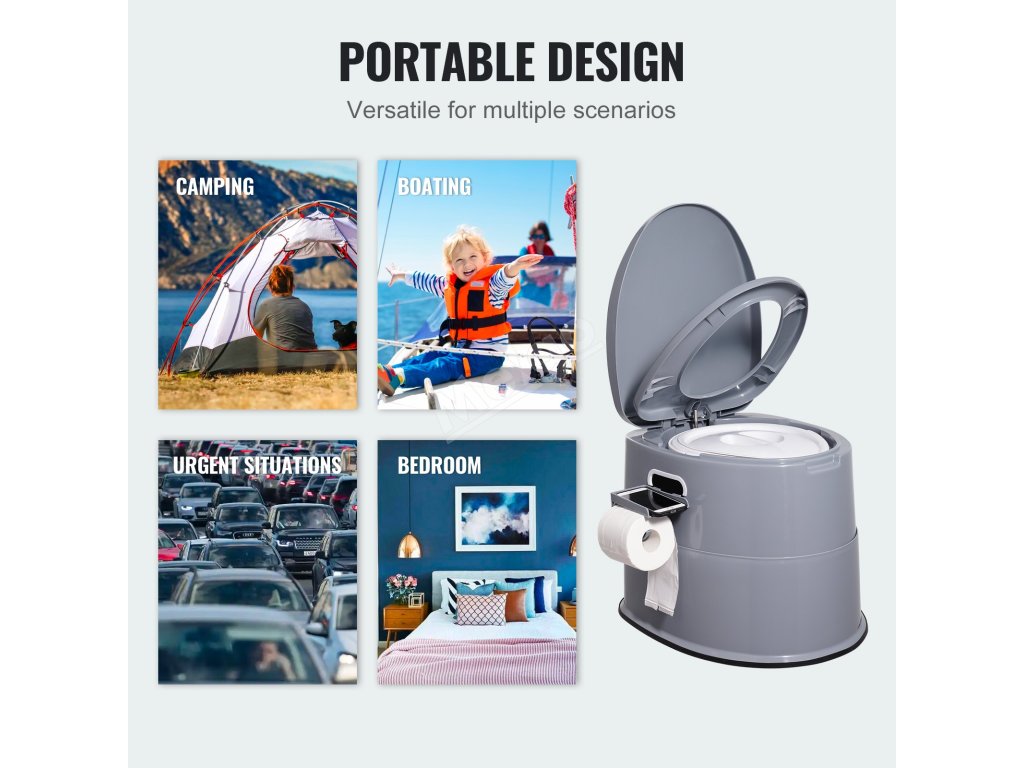 Tato přenosná toaleta se snadno a rychle používá a je ideální pro karavany, lodě, nákladní auta, kempování v přírodě, výlety a další. Její konstrukce vhodná pro mobilitu je vhodná i pro těhotné ženy a starší osoby a lze ji pohodlně umístit do ložnice.