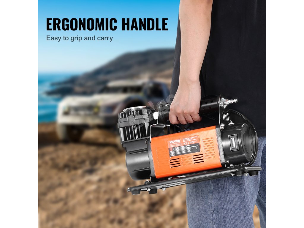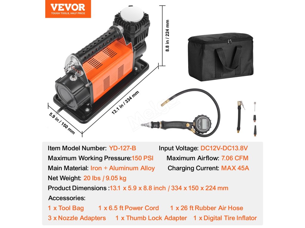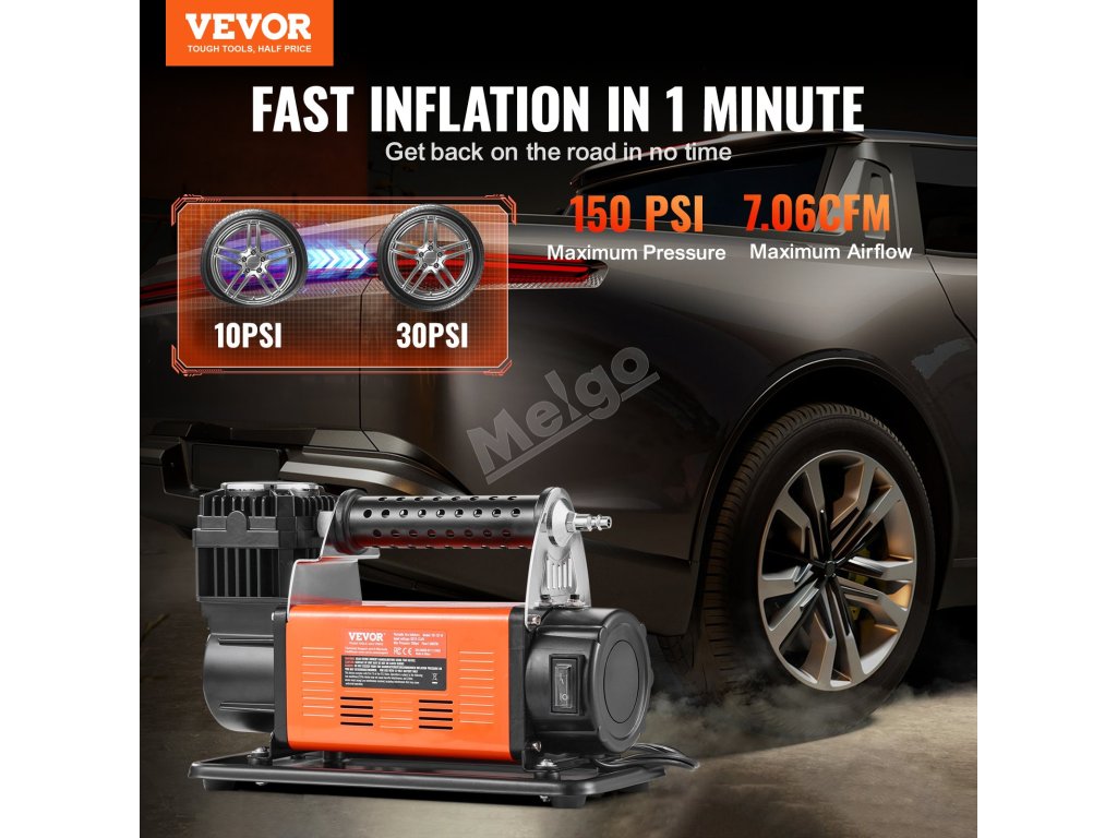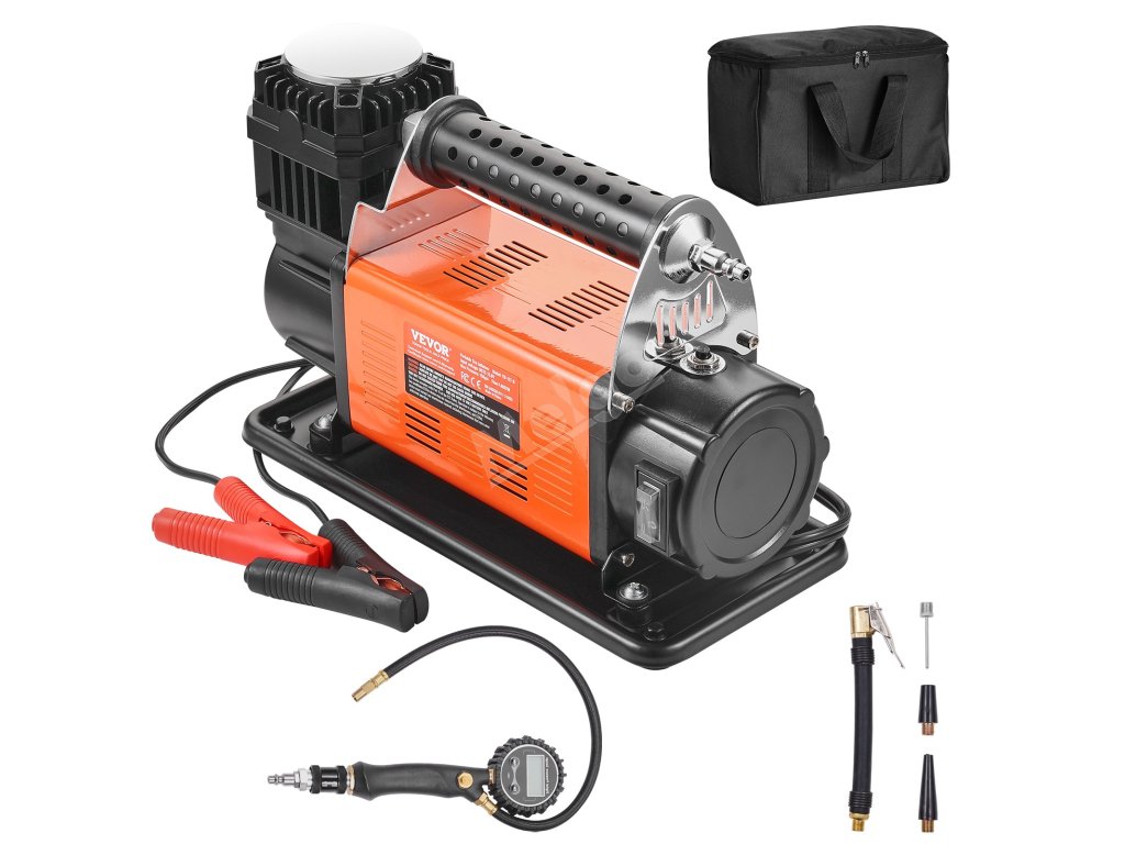 Buďte připraveni s vysoce výkonným přenosným 12V vzduchovým kompresorem VEVOR s digitálním nafukovacím zařízením - spolehlivým společníkem pro bezproblémové nafukování kdykoli a kdekoli. S maximálním tlakem 150 PSI a vysokým průtokem vzduchu 7,06 CFM vás tento přenosný hukovač pneumatik zaručeně vrátí na silnici během okamžiku.