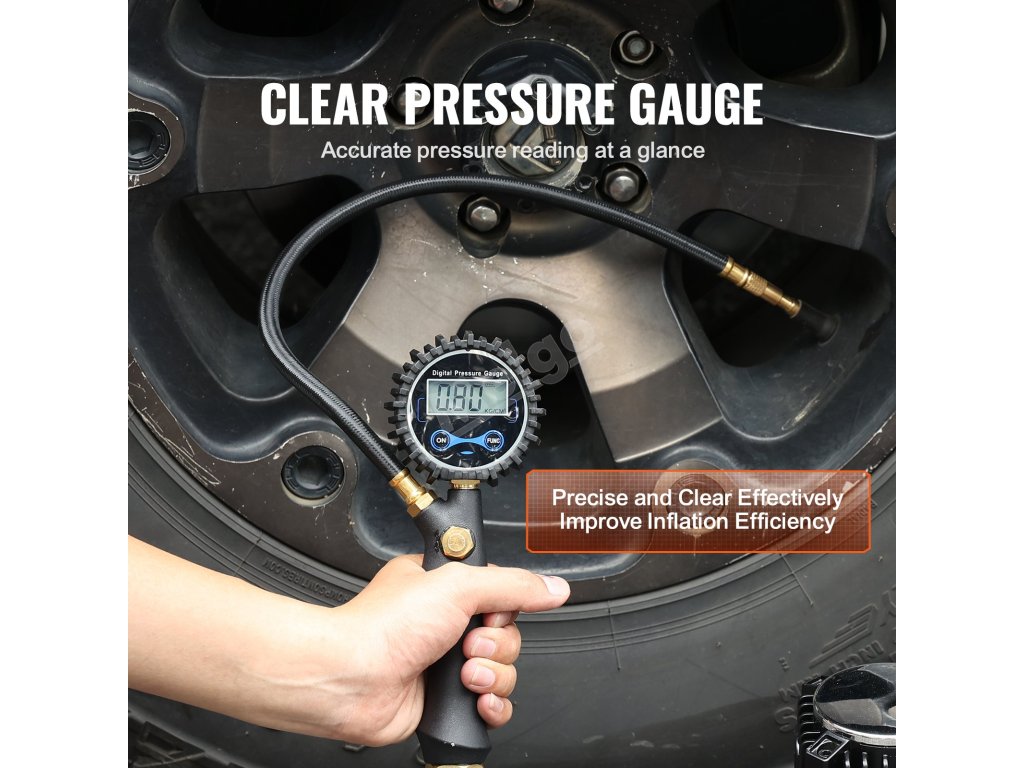 Díky digitálnímu huštění pneumatik s manometrem můžete jednoduše podržet spoušť huštění, abyste zahájili huštění, a uvolnit ji, abyste ho zastavili. To umožňuje efektivní huštění a sledování tlaku v reálném čase bez nutnosti opakovaně zapínat/vypínat spínač vzduchového kompresoru.