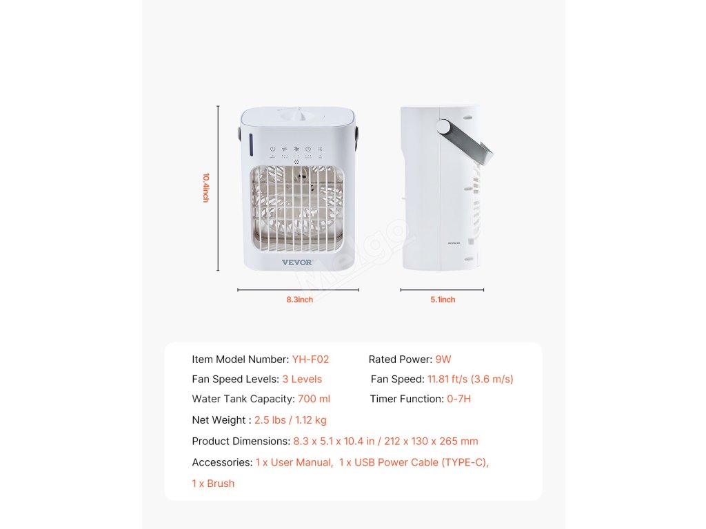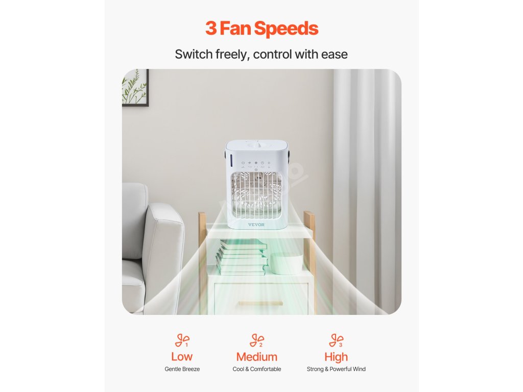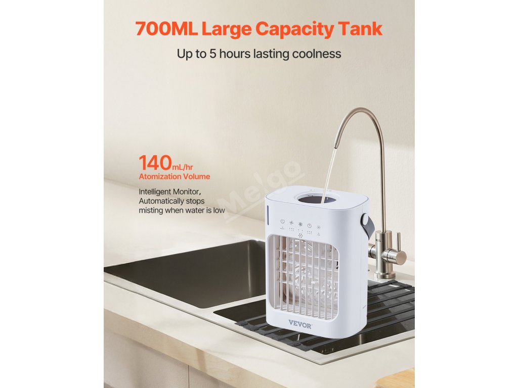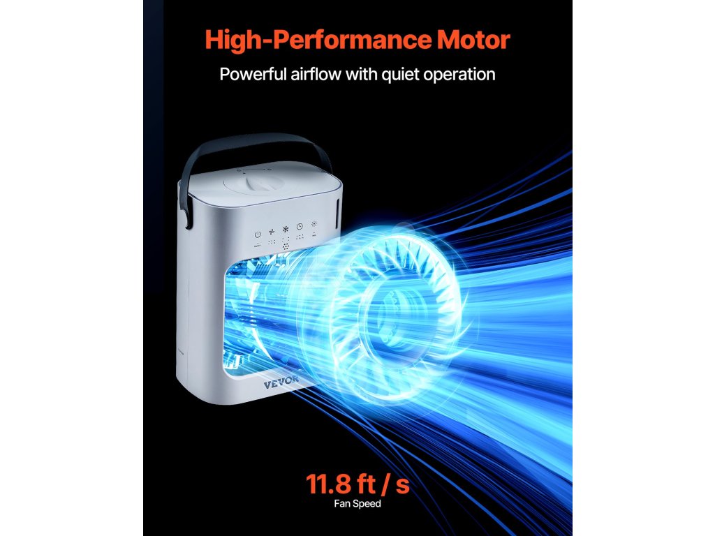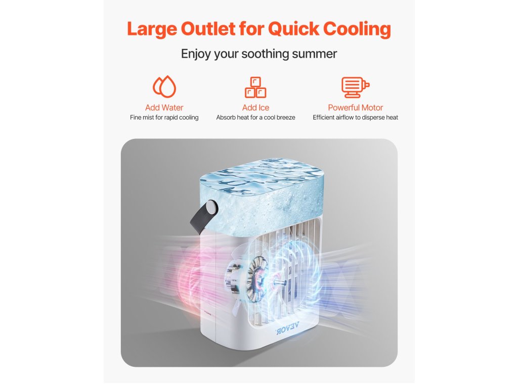 Táto miniklimatizačná jednotka je kompaktná, prenosná a ideálna na domáce, kancelárske alebo vonkajšie použitie. Poskytuje okamžité ochladenie všade tam, kde ho potrebujete, takže je nevyhnutným pomocníkom na udržanie pohodlia v akomkoľvek prostredí.