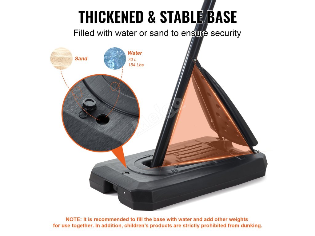 Venkovní basketbalový koš je vybaven zesílenou a stabilní základnou. K vyplnění základny můžete zvolit vodu nebo písek, pak budete mít pevnou a bezpečnou základnu pro své hry.