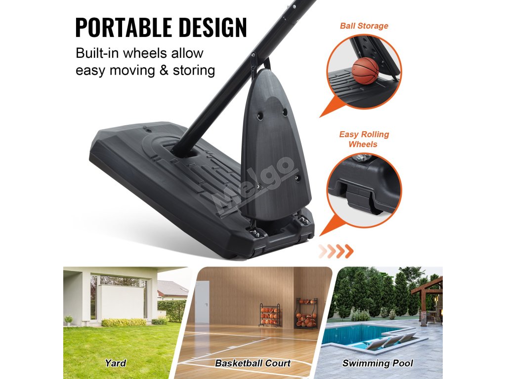 Tento nastavitelný basketbalový koš je navržen s možností nastavení výšky, takže si hru mohou užít hráči všech věkových kategorií a úrovní dovedností, takže je ideální pro děti i dospělé.