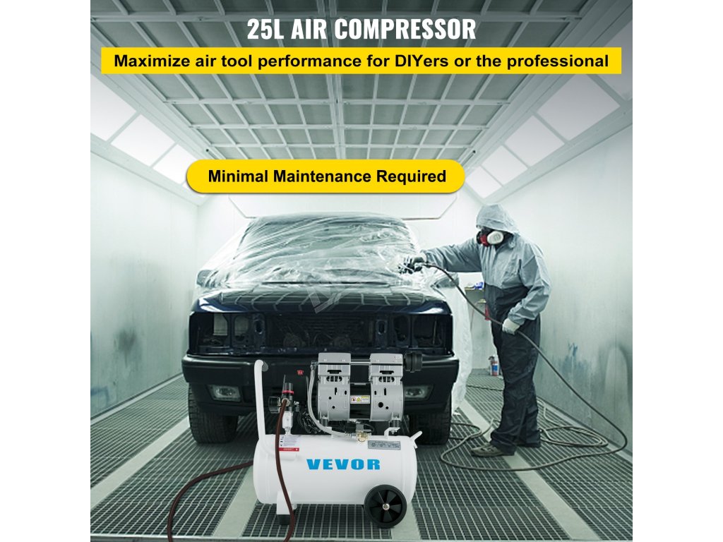 Vzduchový kompresor má 25litrovou nádrž, která maximalizuje výkon pneumatického nářadí. Kromě toho je vybaven bezolejovým čerpadlem pro minimální údržbu.