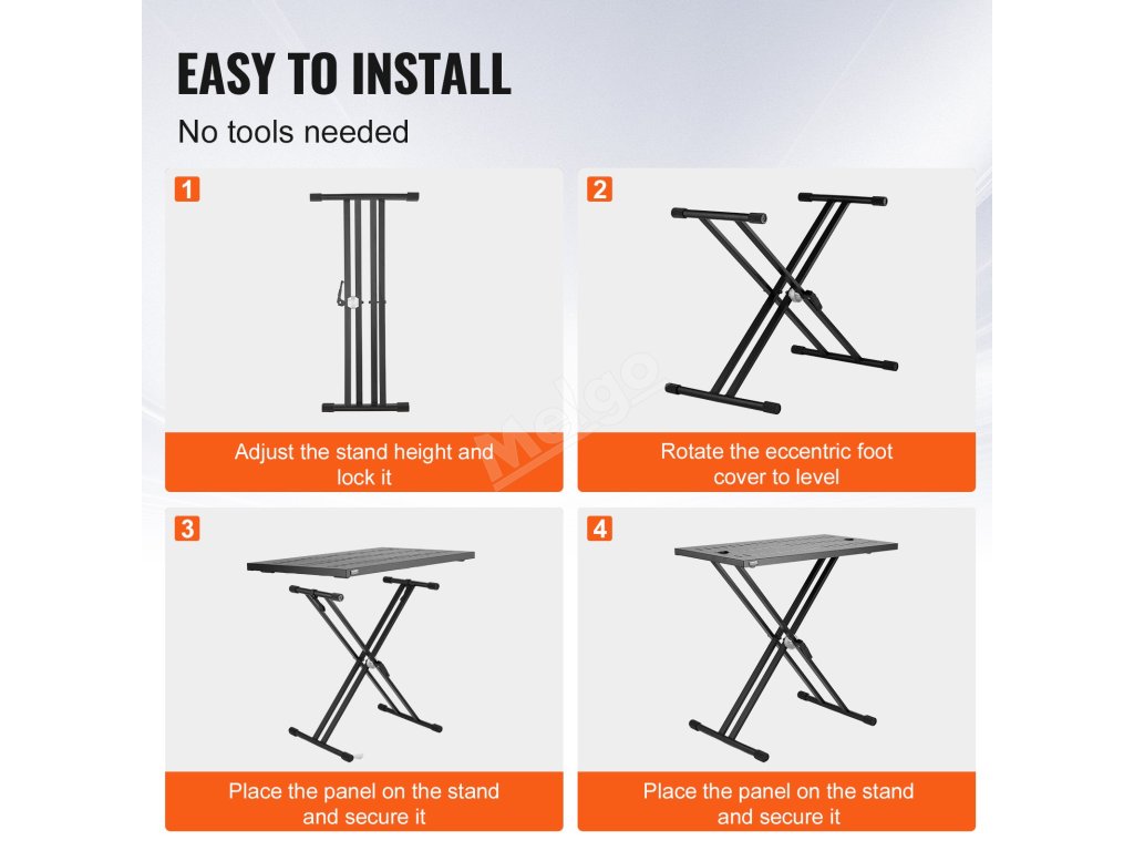 Není potřeba žádné nářadí! Náš přenosný DJ stůl se snadno skládá pomocí hladkých konektorů, takže nastavení a přeprava jsou na každé akci bezproblémové.