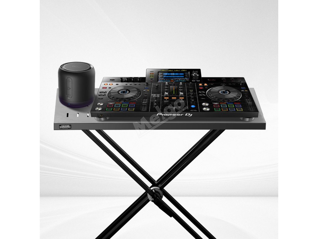 DJ stůl má velkou desku o rozměrech 32" x 20", na kterou se pohodlně vejde DJ vybavení. Jeho síťovaná konstrukce zlepšuje odvod tepla, udržuje vaši sestavu organizovanou a vizuálně atraktivní pro vaše publikum.