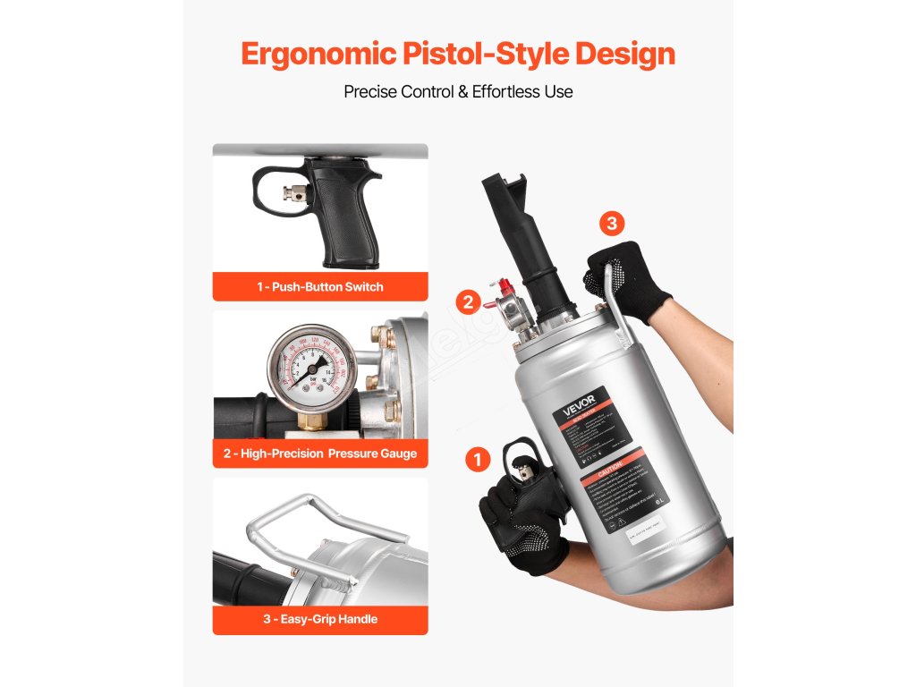 Ideální pro domácí garáže, opravny, farmy a ranče. Pistole splňuje požadavky na huštění různých typů pneumatik. Je lehká, snadno se s ní manipuluje a snadno se skladuje.