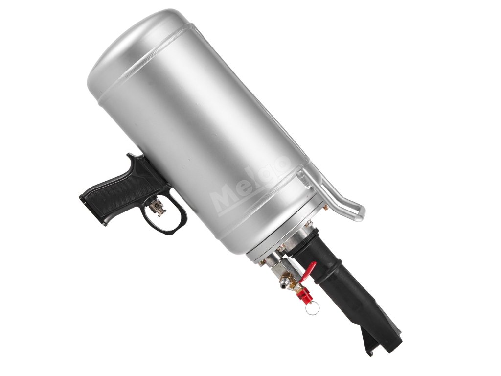 Naše pistole zvyšuje úspěšnost nasazení patek díky většímu průměru a rychlejšímu výfuku. Přírubové konce hadic zajišťují správný úhel od ráfku k pneumatice. Dvojité hadice s tryskami zvyšují pokrytí proudem vzduchu. Vybavena tlakoměrem odolným proti nárazu pro přesné měření.