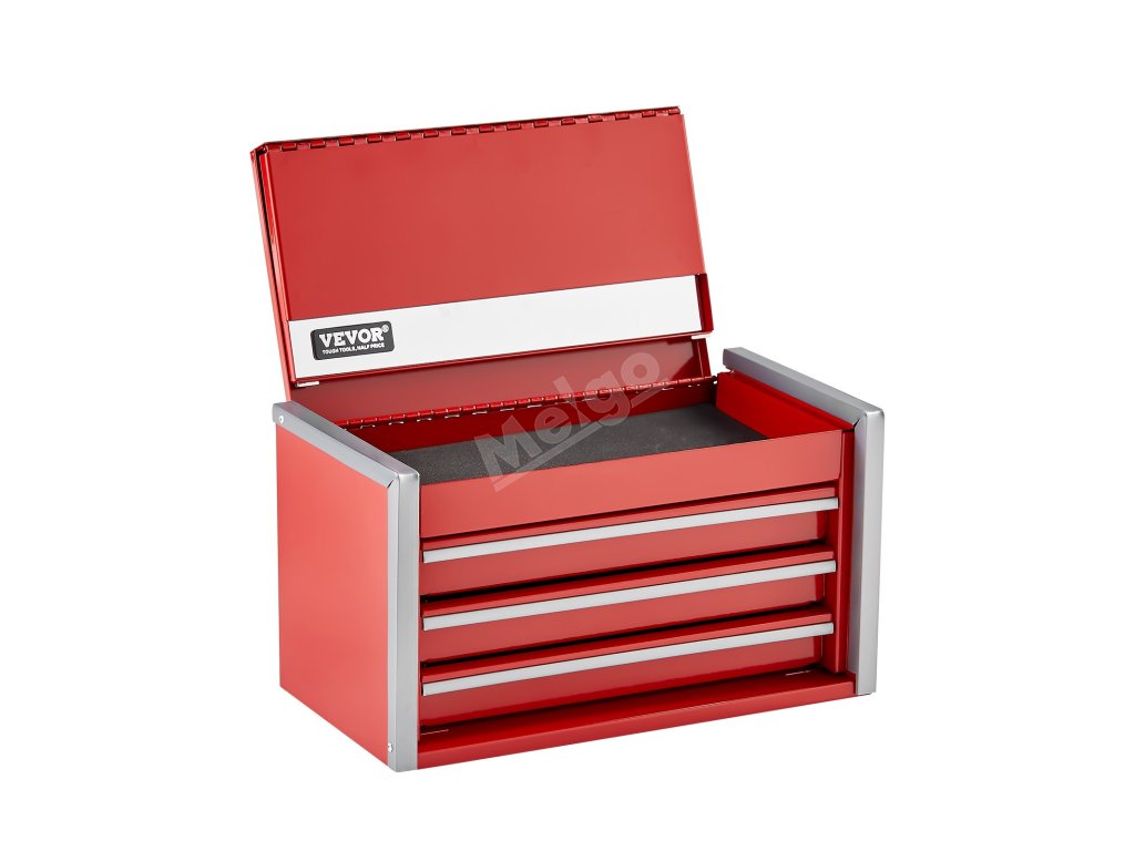 Miniaturní kovový box na nářadí má 1 horní přihrádku a 3 zásuvky, které vám umožní přehledně roztřídit předměty a udržet váš stůl uklizený a bez nepořádku.