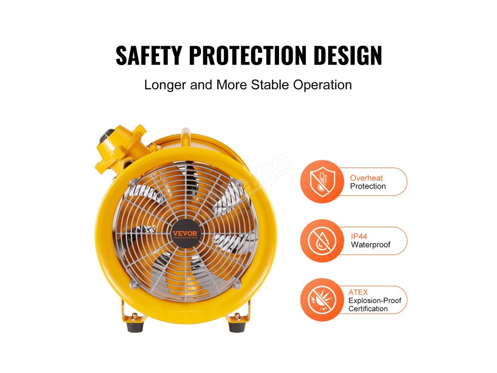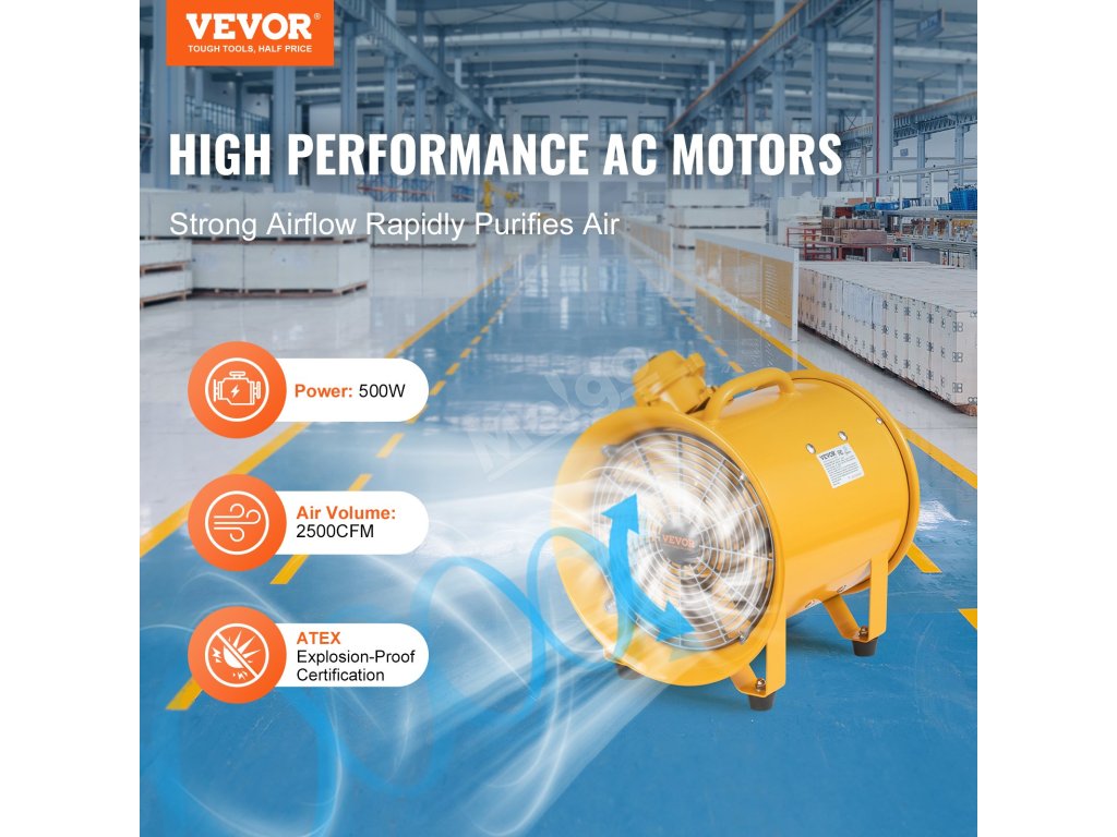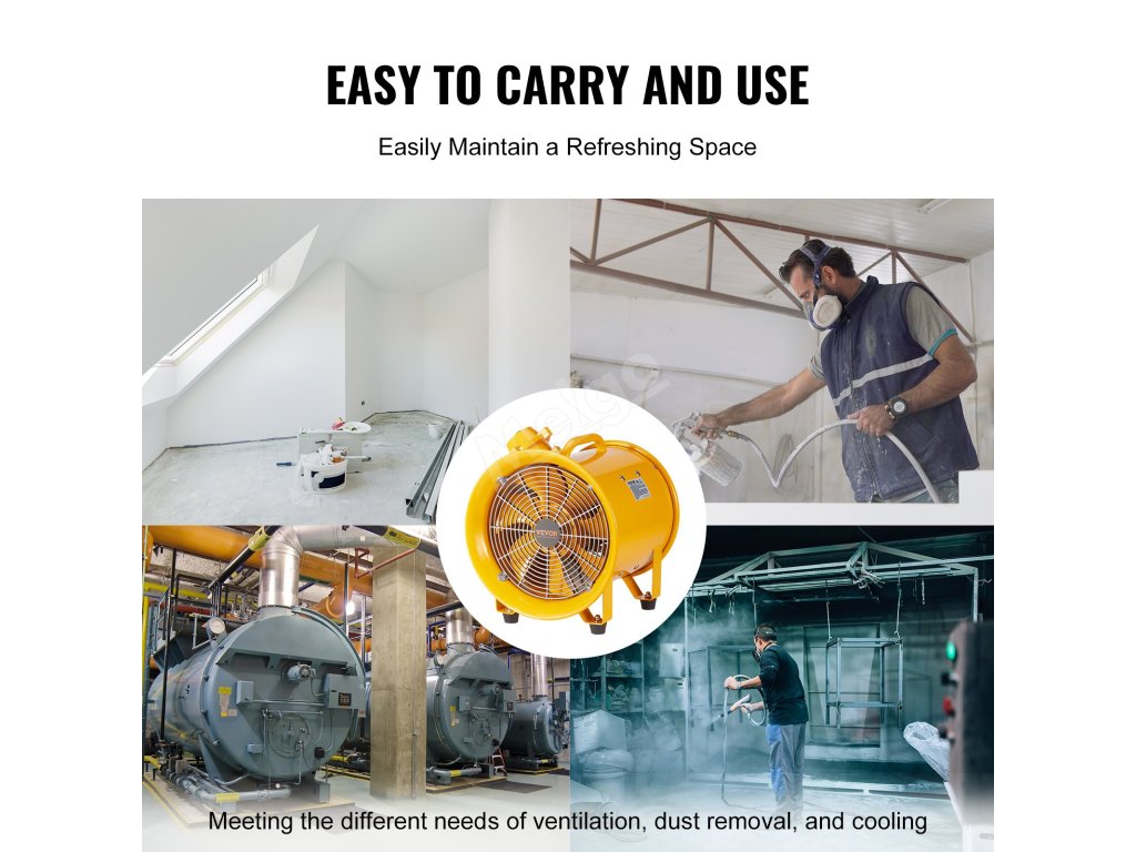 Je vybaven vysoce výkonným střídavým motorem a účinně, rychle a důkladně odvádí kouř, pachy a horký vzduch. Je ideální pro širokou škálu aplikací, jako jsou sklady, staveniště a továrny. Naše výrobky jsou před odesláním důkladně testovány, takže je můžete bez obav používat.