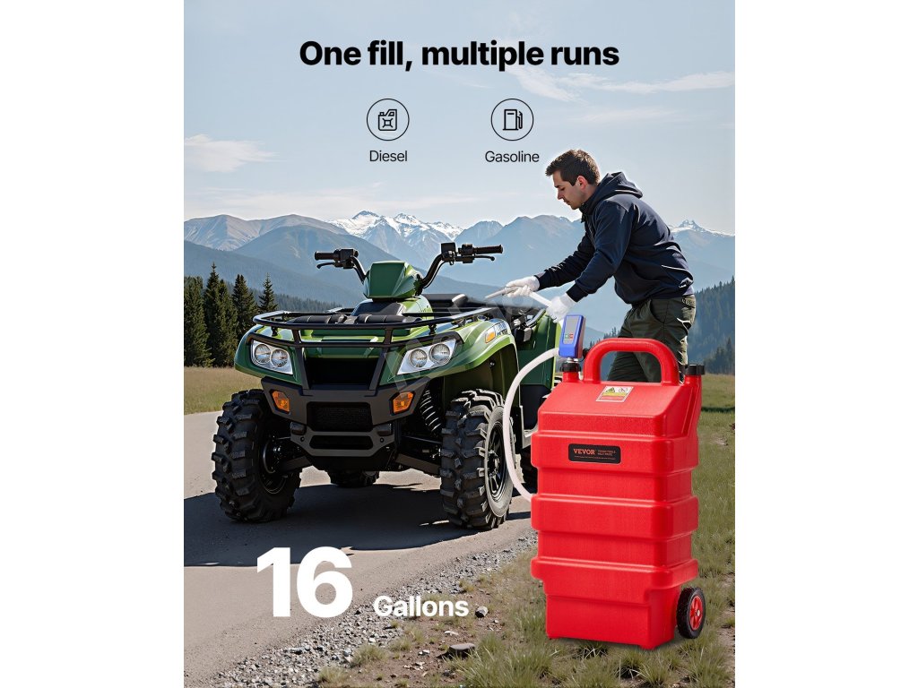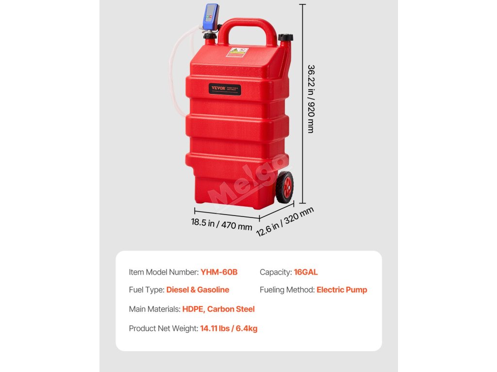 Přenosný palivový zásobník 16 Gallon s 12V DC 2.5 GPM pumpou a 4 ft